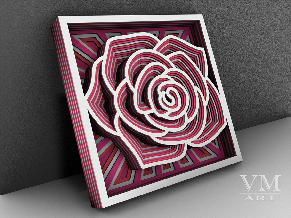 F22 - Layered Rose SVG, 3D Rose Mandala, Laser cut file Mandala DXF file, Layered Mandala SVG for Cricut, 3D Rose