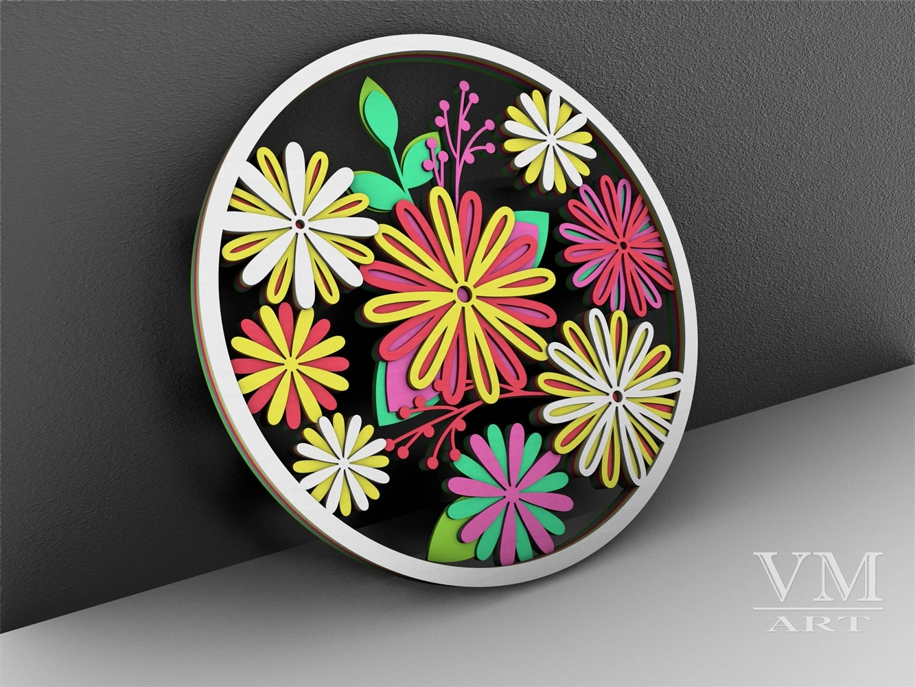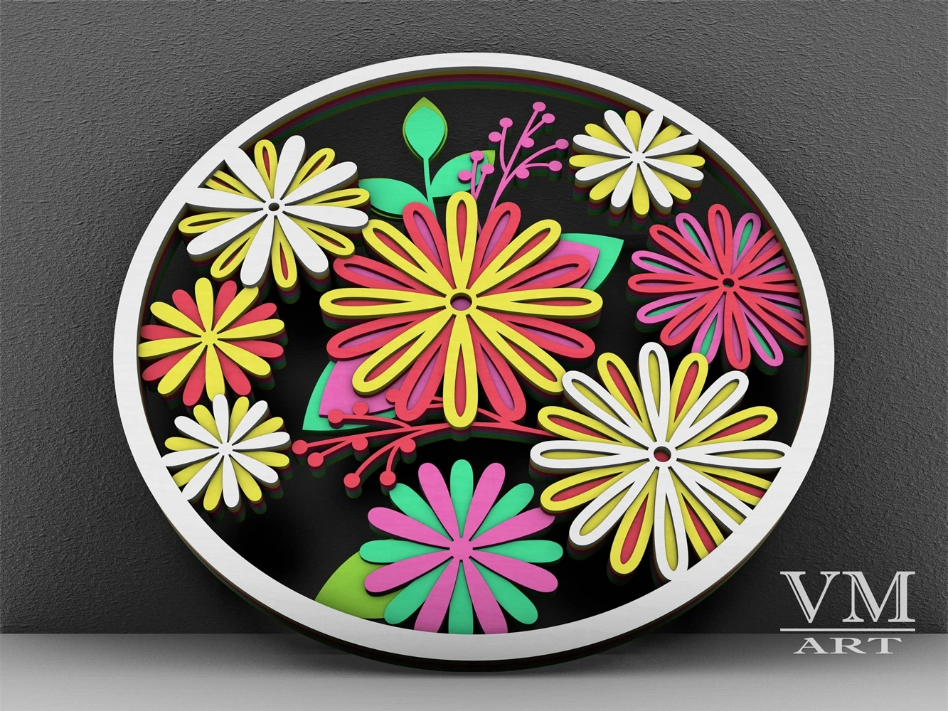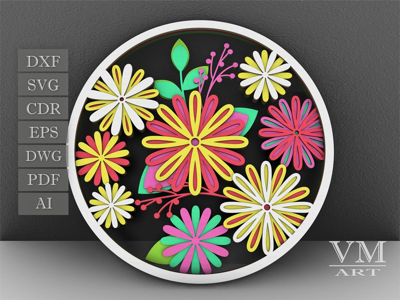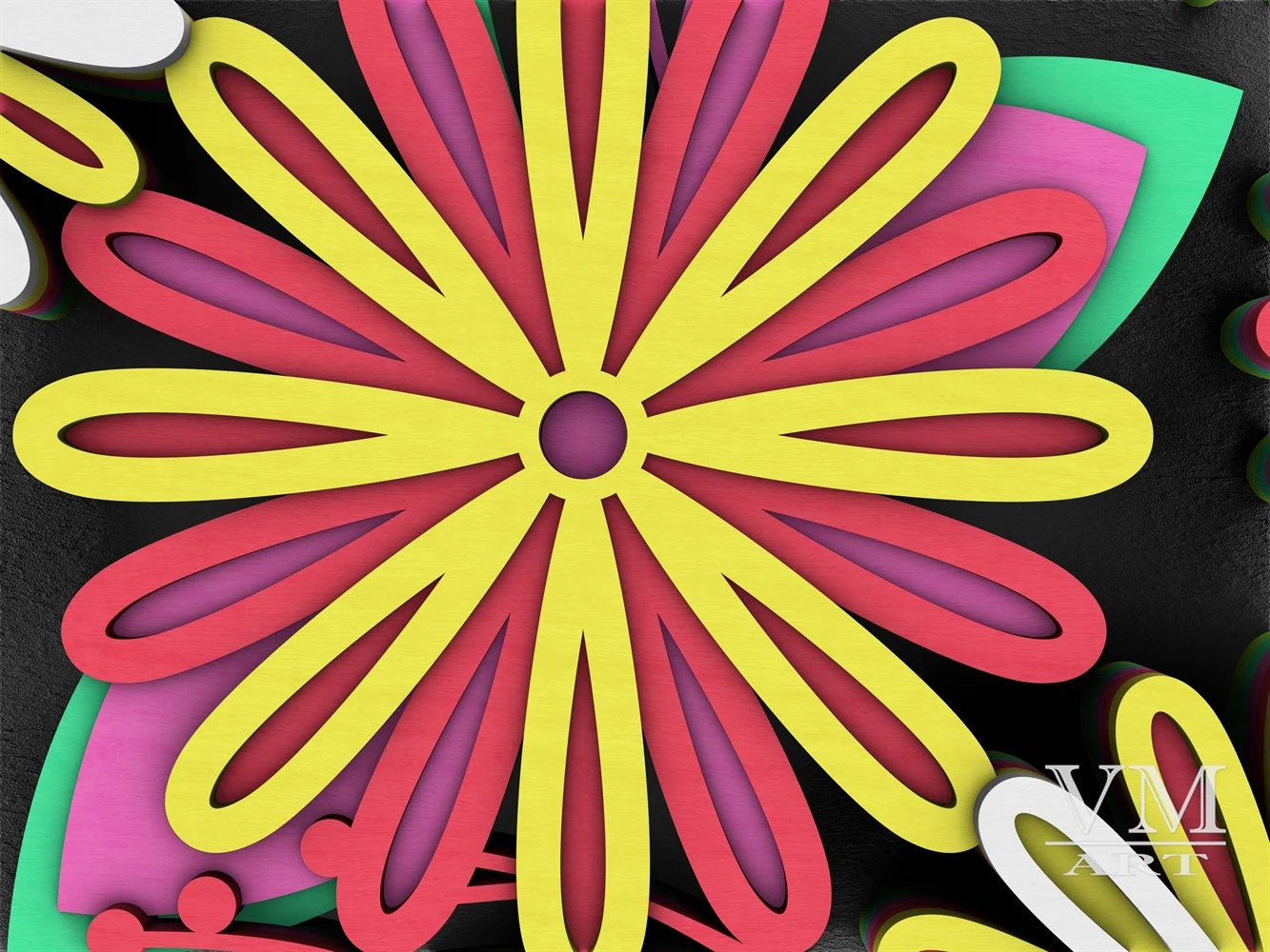 F23 - Layered Flower SVG, 3D Flower Mandala, Laser cut file Mandala DXF file, Layered Mandala SVG for Cricut, 3D Flower