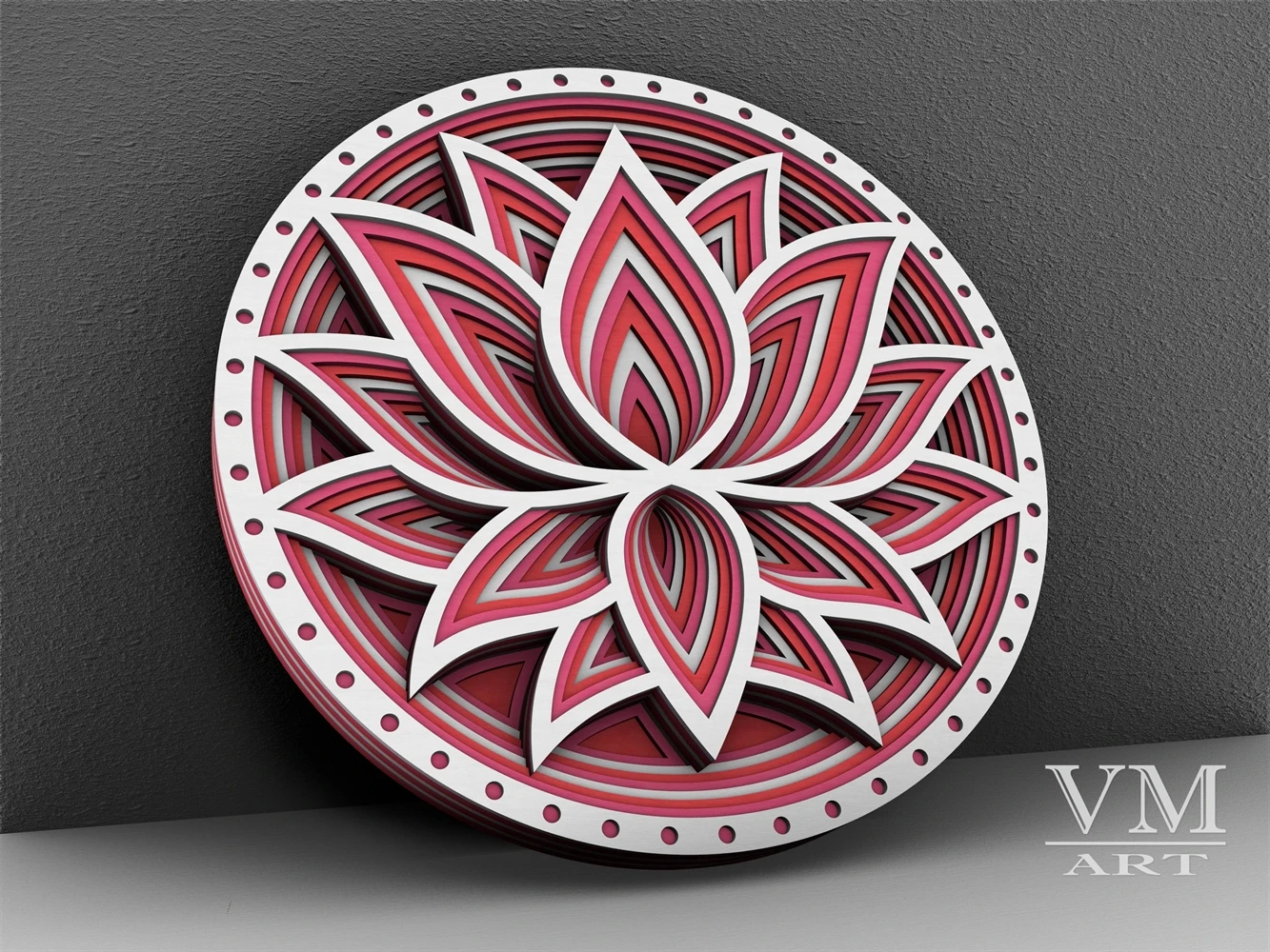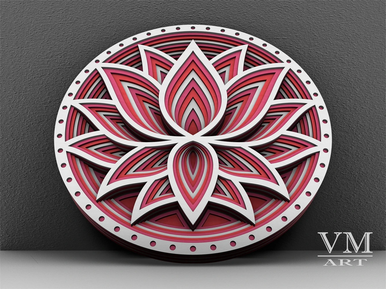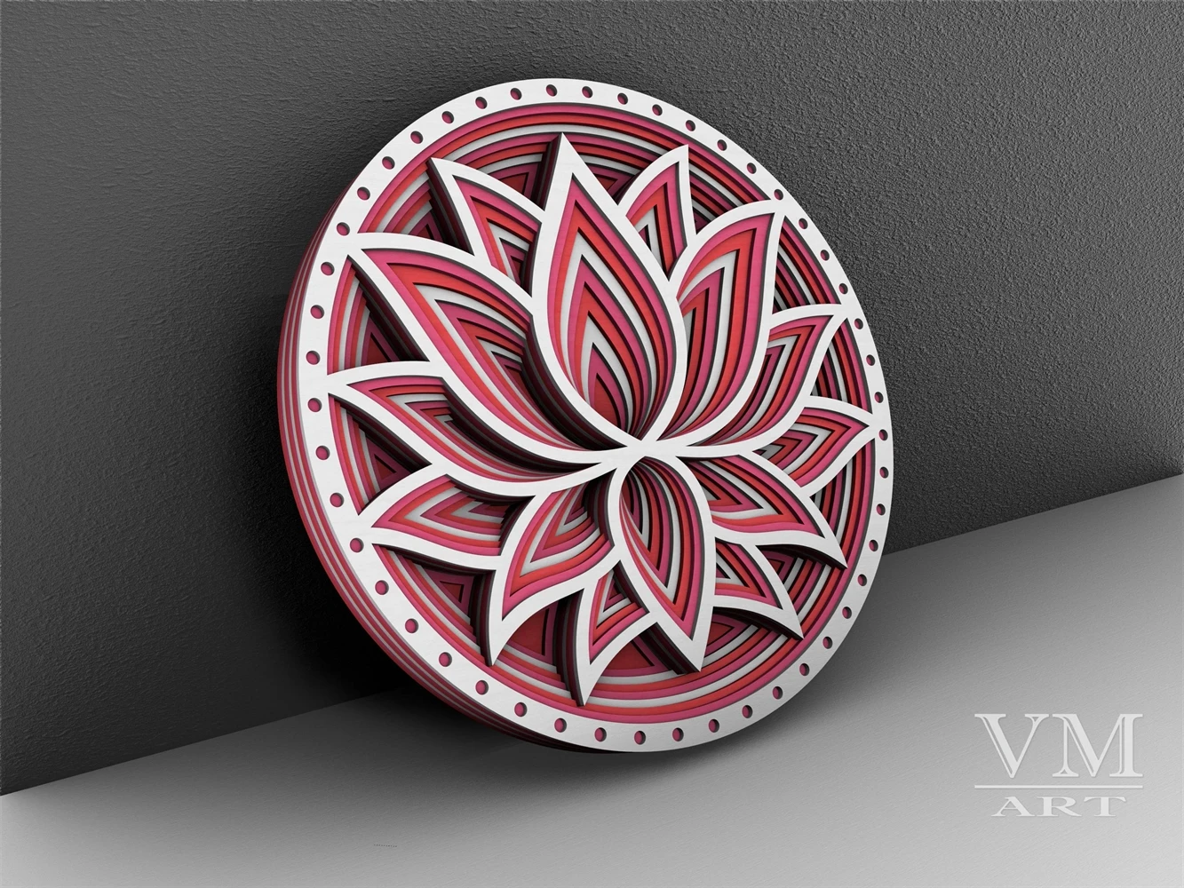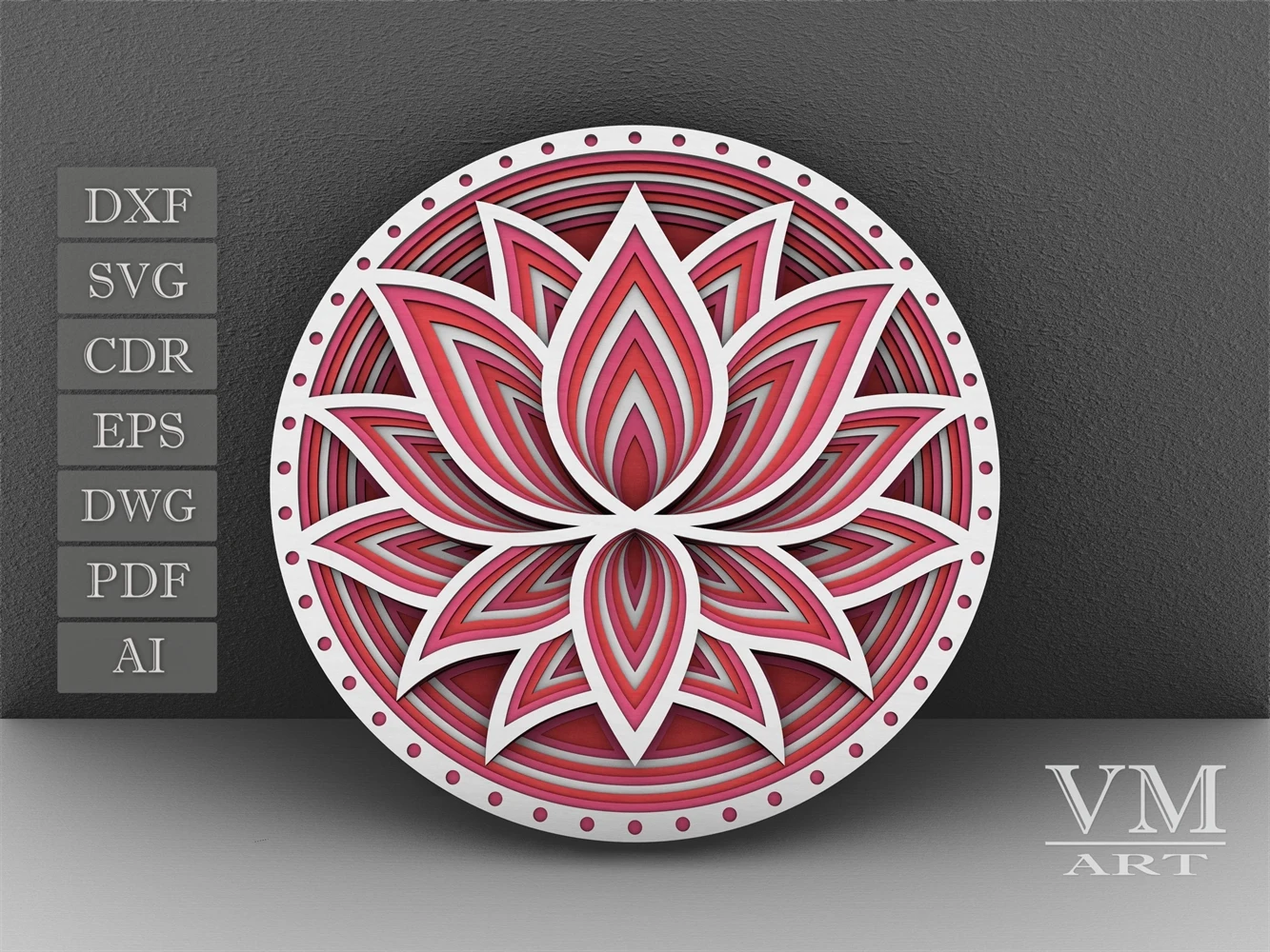 F24 - Layered Lotus SVG, 3D Lotus Mandala, Laser cut file Mandala DXF file, Layered Mandala SVG for Cricut, 3D Lotus