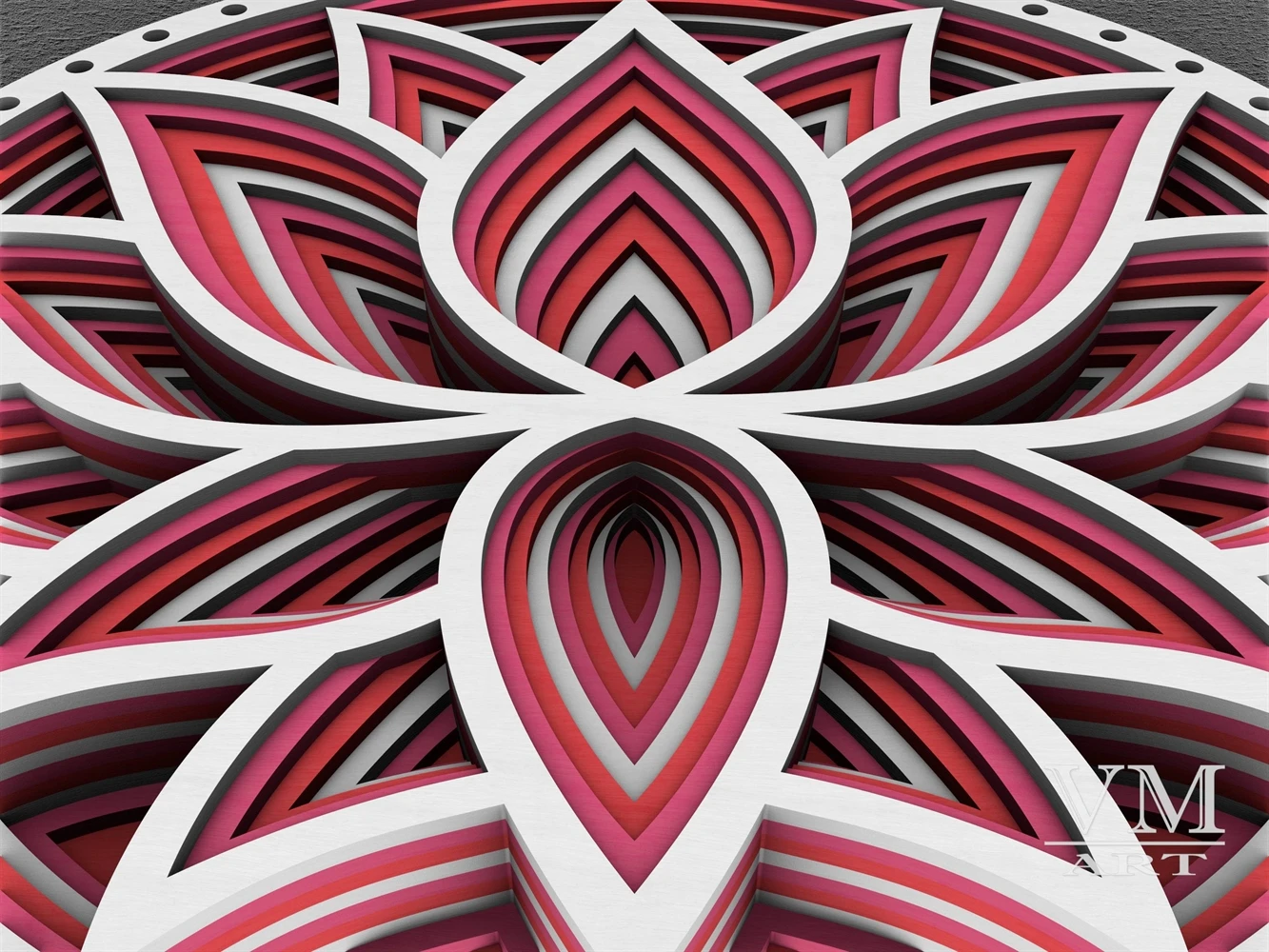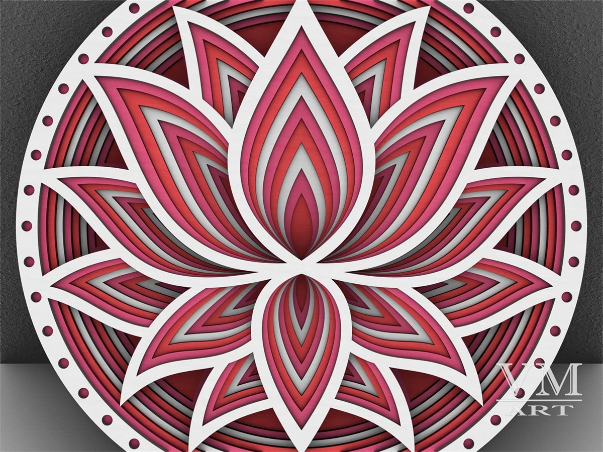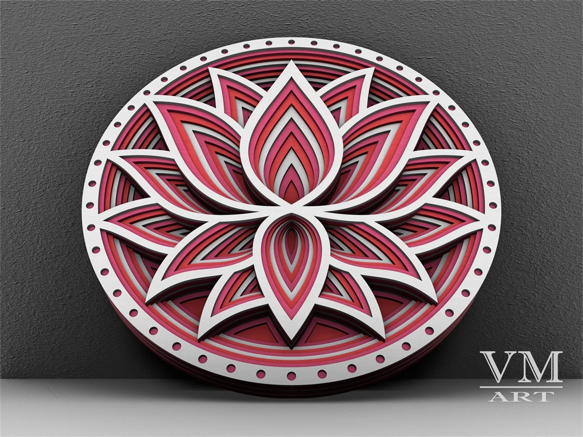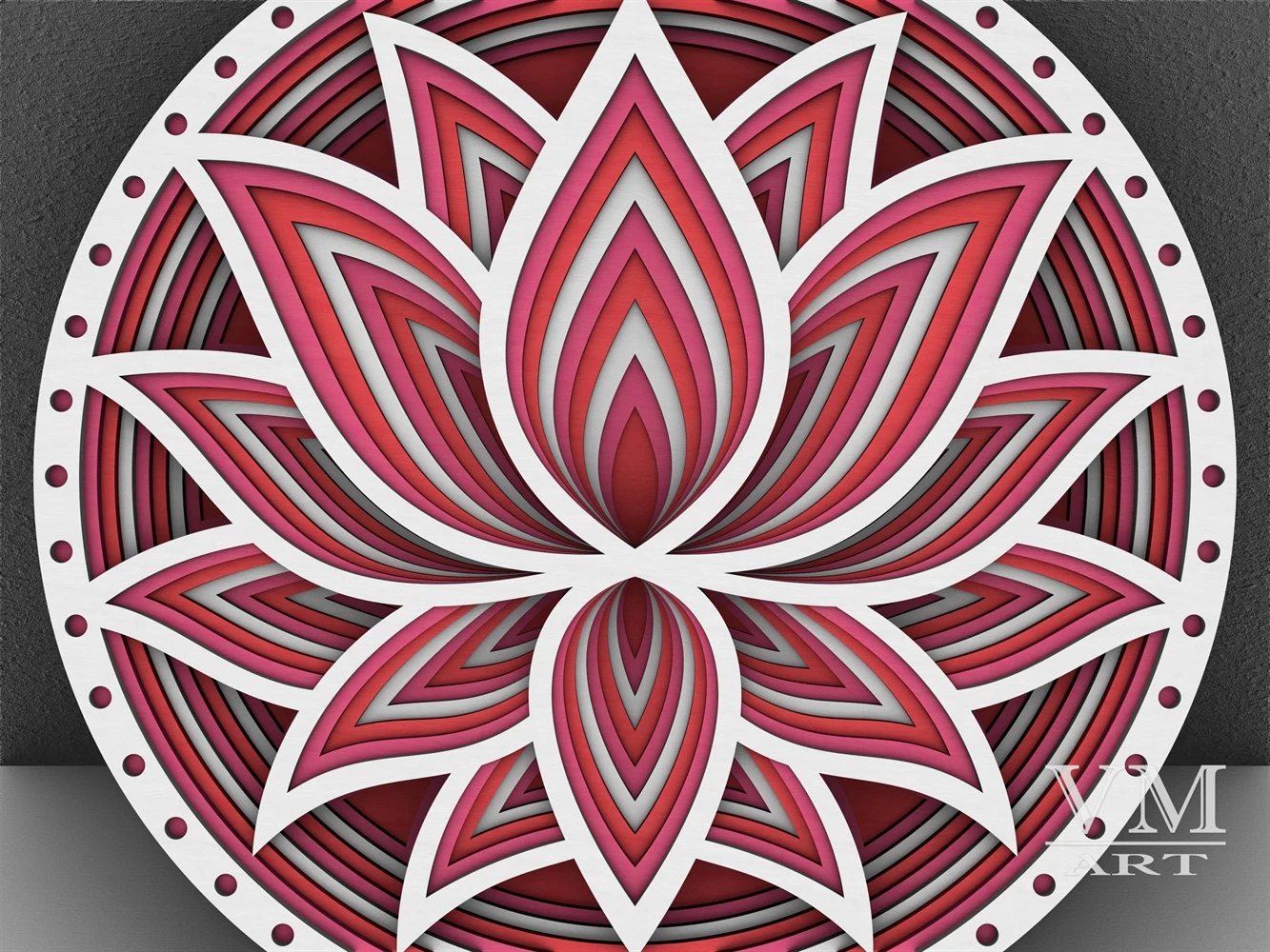 F24 - Layered Lotus SVG, 3D Lotus Mandala, Laser cut file Mandala DXF file, Layered Mandala SVG for Cricut, 3D Lotus