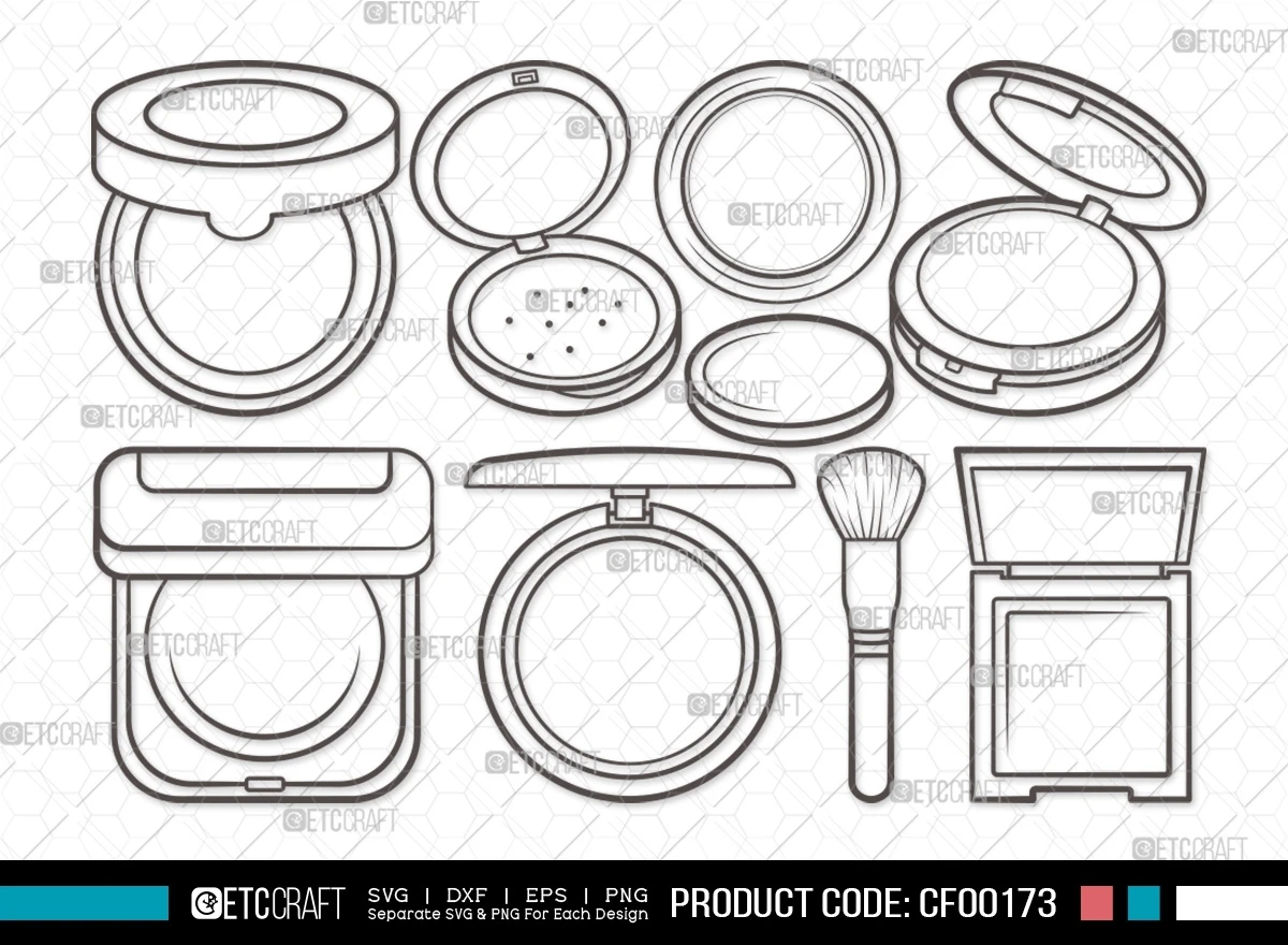 Enhance your design projects with our Face Powder Outline Cosmetic Makeup Fashion Beauty Mirror SVG Cut File Bundle. This digital collection presents meticulously designed SVG, DXF, EPS, and PNG files featuring stylish face powder and beauty mirror outlines. Ideal for makeup enthusiasts, beauticians, and fashion aficionados, this bundle offers a creative touch for your projects.