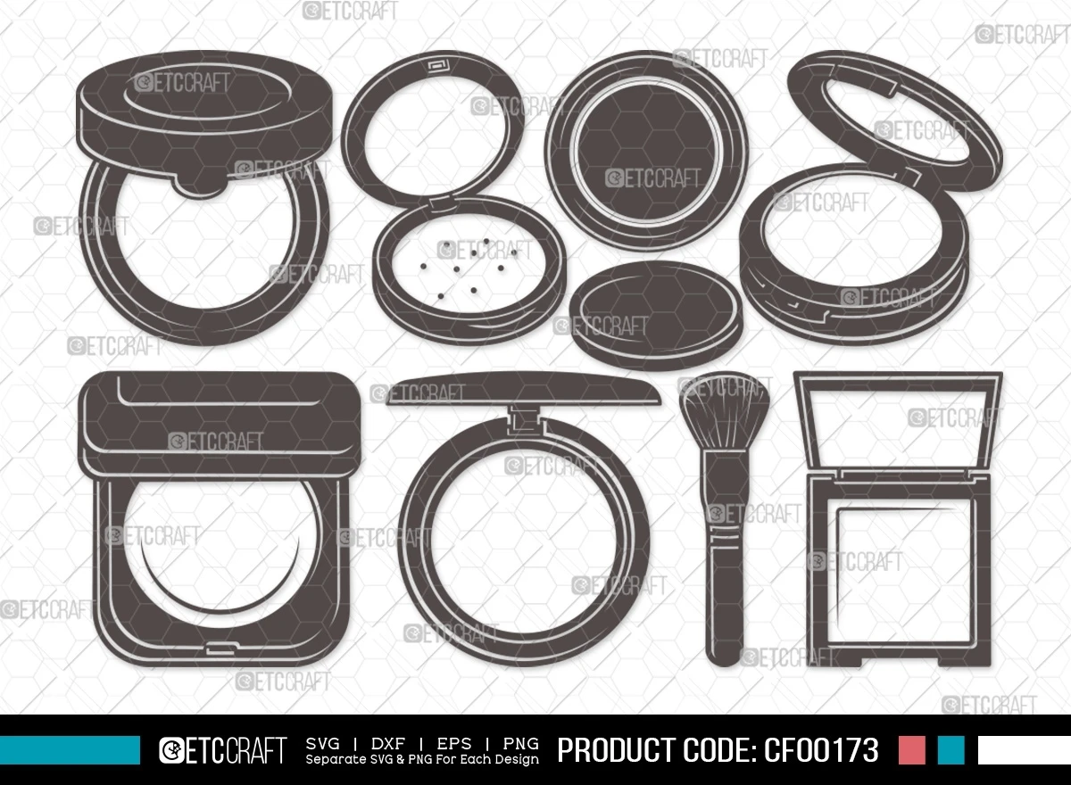 Elevate your designs with our Face Powder Silhouette Cosmetic Makeup Fashion Beauty Mirror SVG Cut File Bundle. This digital collection offers meticulously designed SVG, DXF, EPS, and PNG files, featuring elegant silhouettes of face powder and beauty mirrors. Whether you're a makeup artist, beautician, or a fashion enthusiast, this bundle is a valuable addition to your creative toolkit.