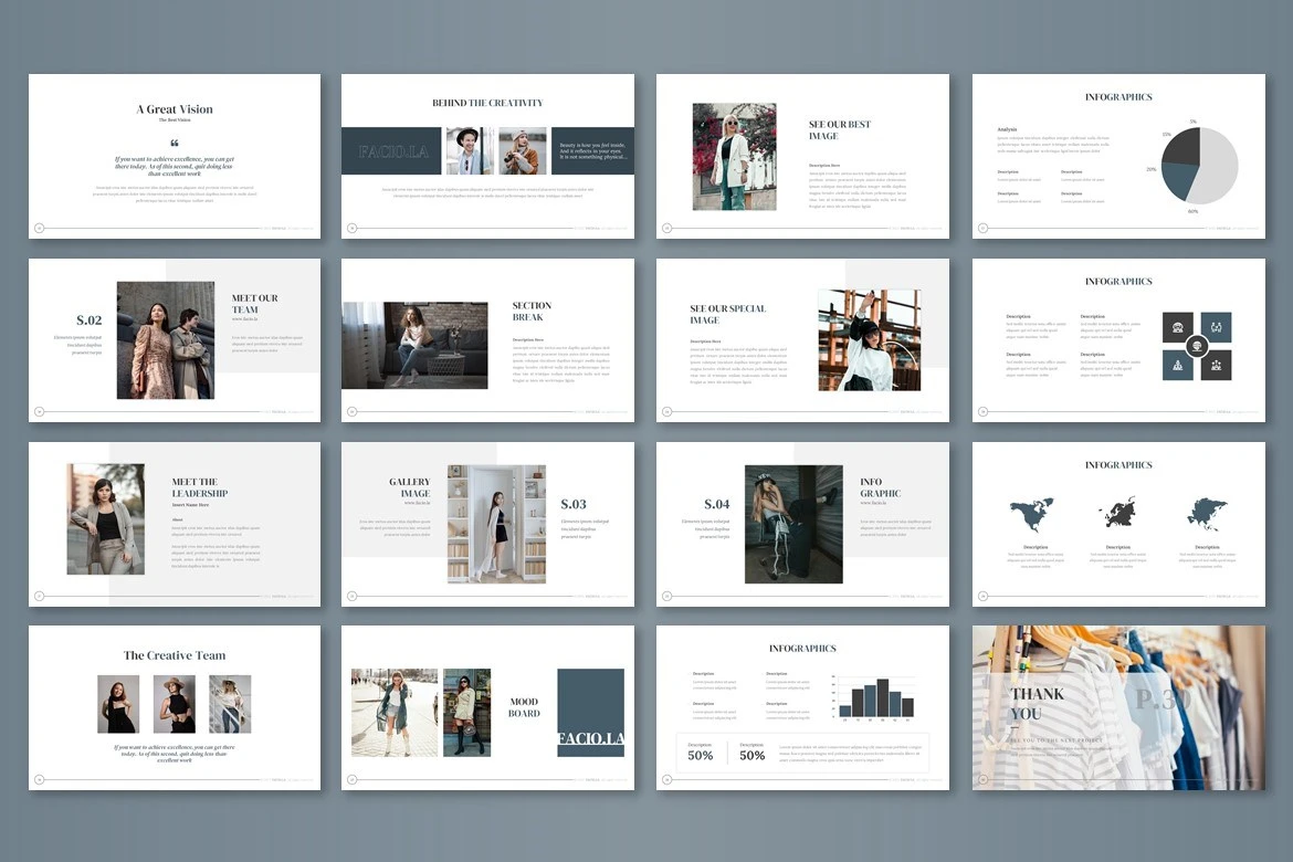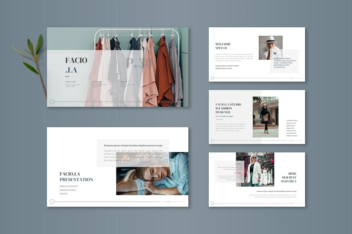 Get it now! **Faciola - Powerpoint Template** for All Business and Personal Needs All elements on this template are editable; input your content, replace your image with a placeholder, change the color, and all presentations include an animated slide to present your slides.