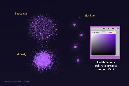 (when you choose the color of the brush you will see 2 boxes in the corner instead of one, mix the two colors to get amazing results)