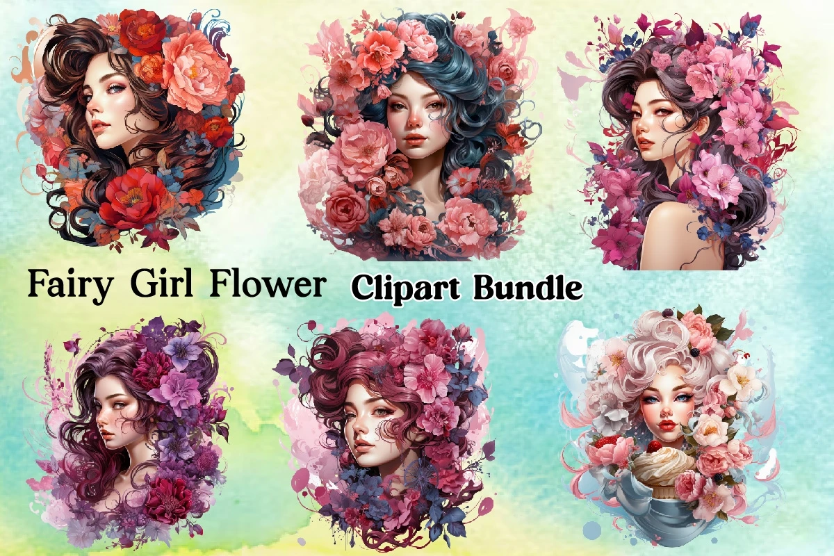 Watercolor Fairy Girl Flower Sublimation Design Bundle