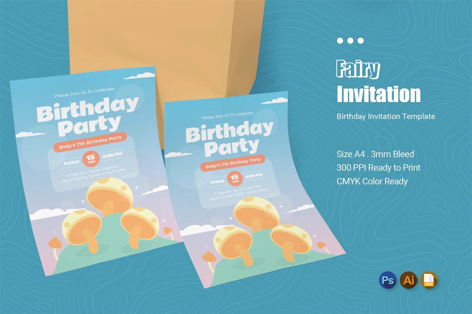 Of course you want to invite friends to your birthday party with the best invitations! Impress the invited guests with your style of invitation, by using this invitation card template. You can easily edit & customize each of the designs because every component is well organized and editable.