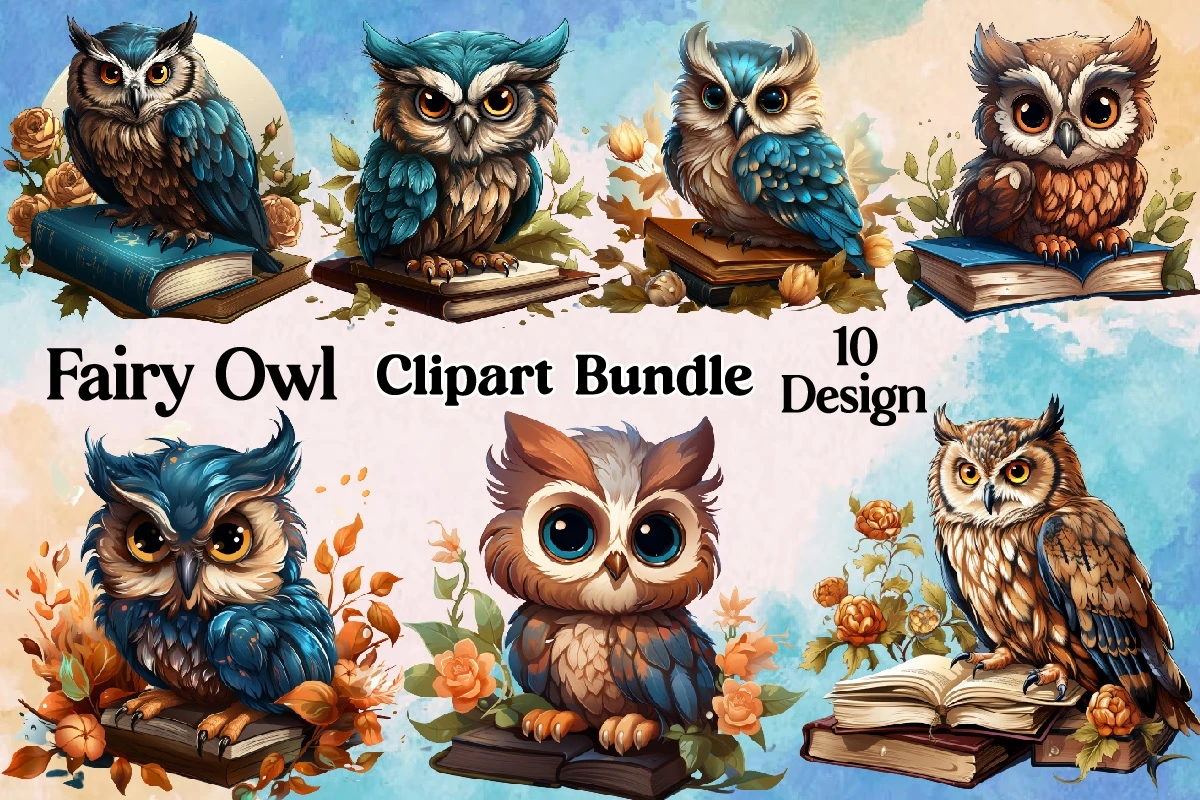 Watercolor Fairy Owl Sublimation Design Bundle
