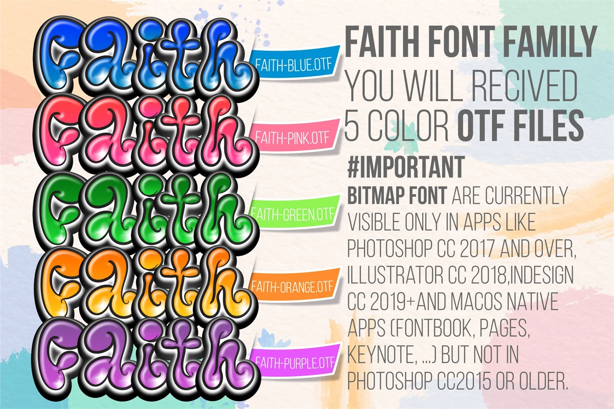 Faith is a graffiti-styled modern color font. Add it to any design that requires an urban touch. The only limit is your imagination!