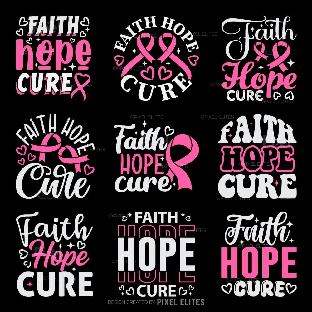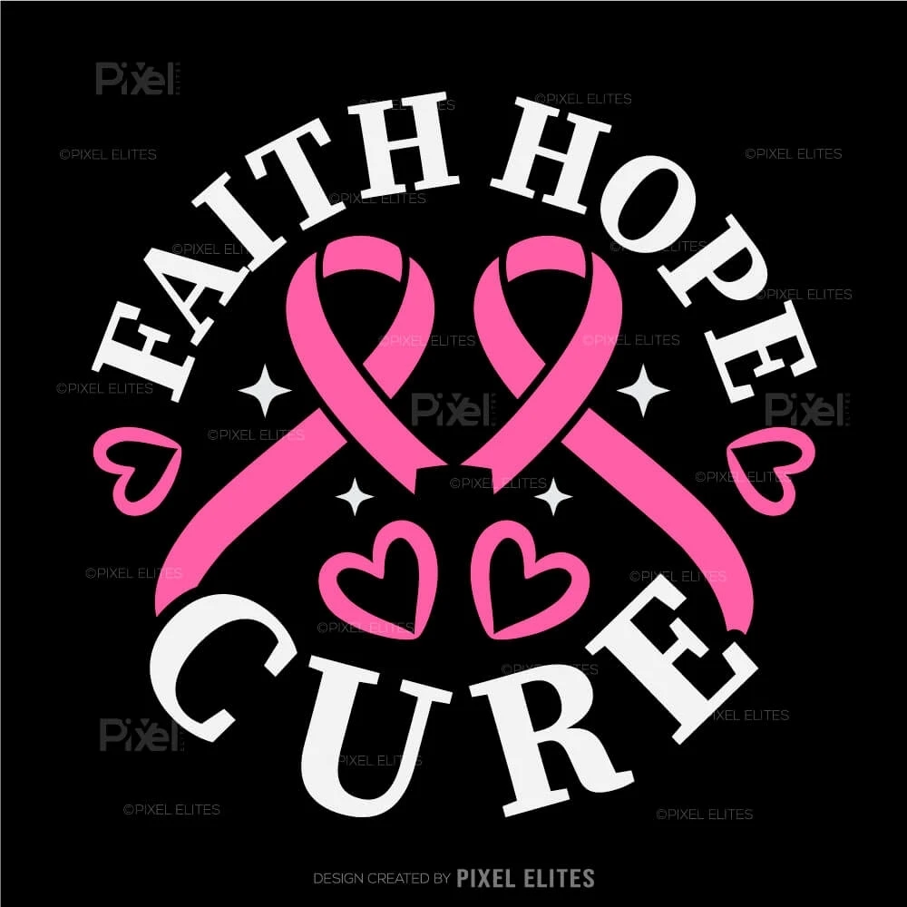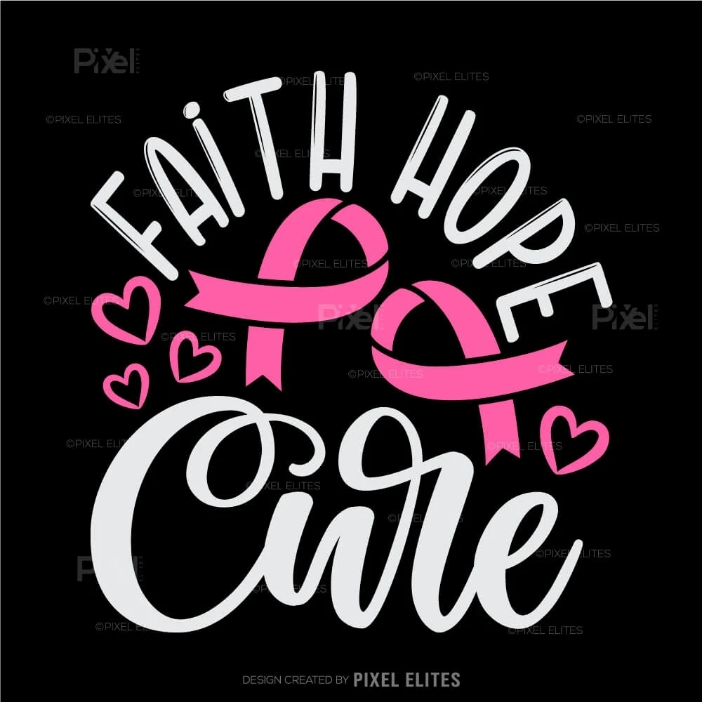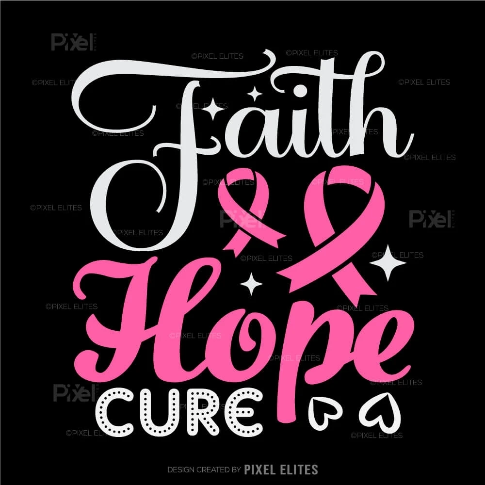 Faith Hope Cure SVG Cut Files Pink Ribbon T-Shirt Design