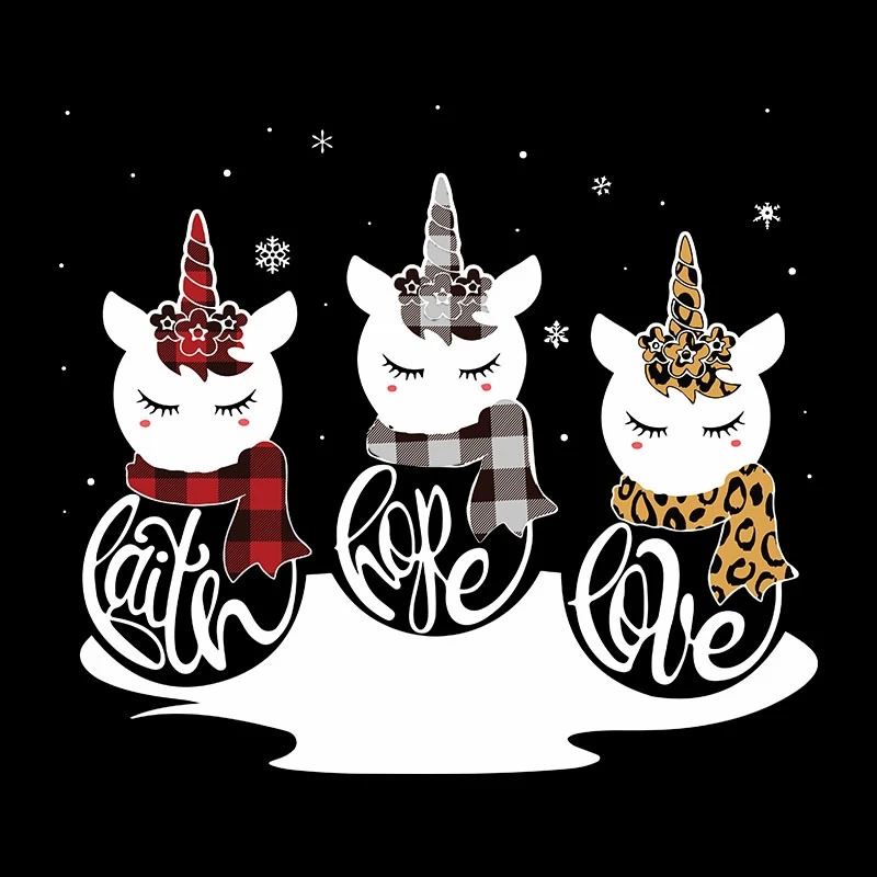 Faith Hope Love unicorn snowman Svg, Christmas clipart