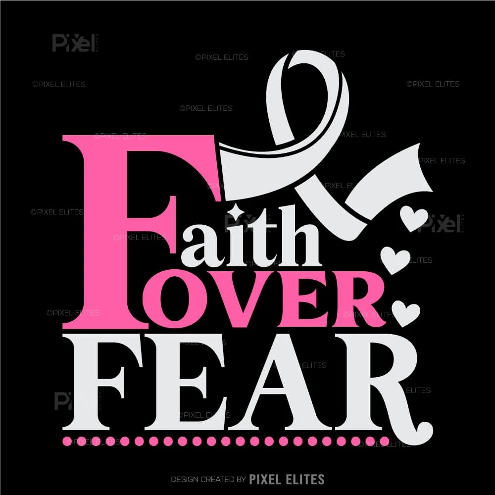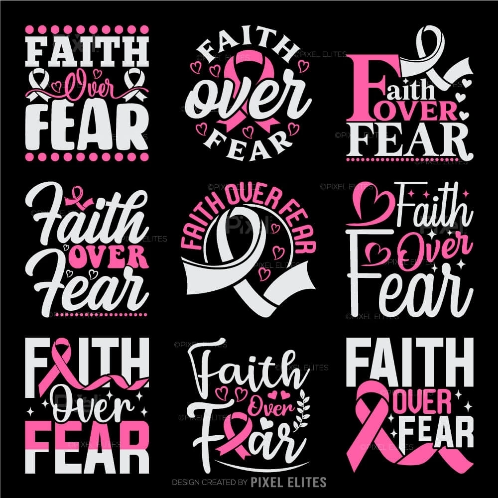- Faith Over Fear SVG Pink Ribbon Fight Cancer T-Shirt Design Bundle