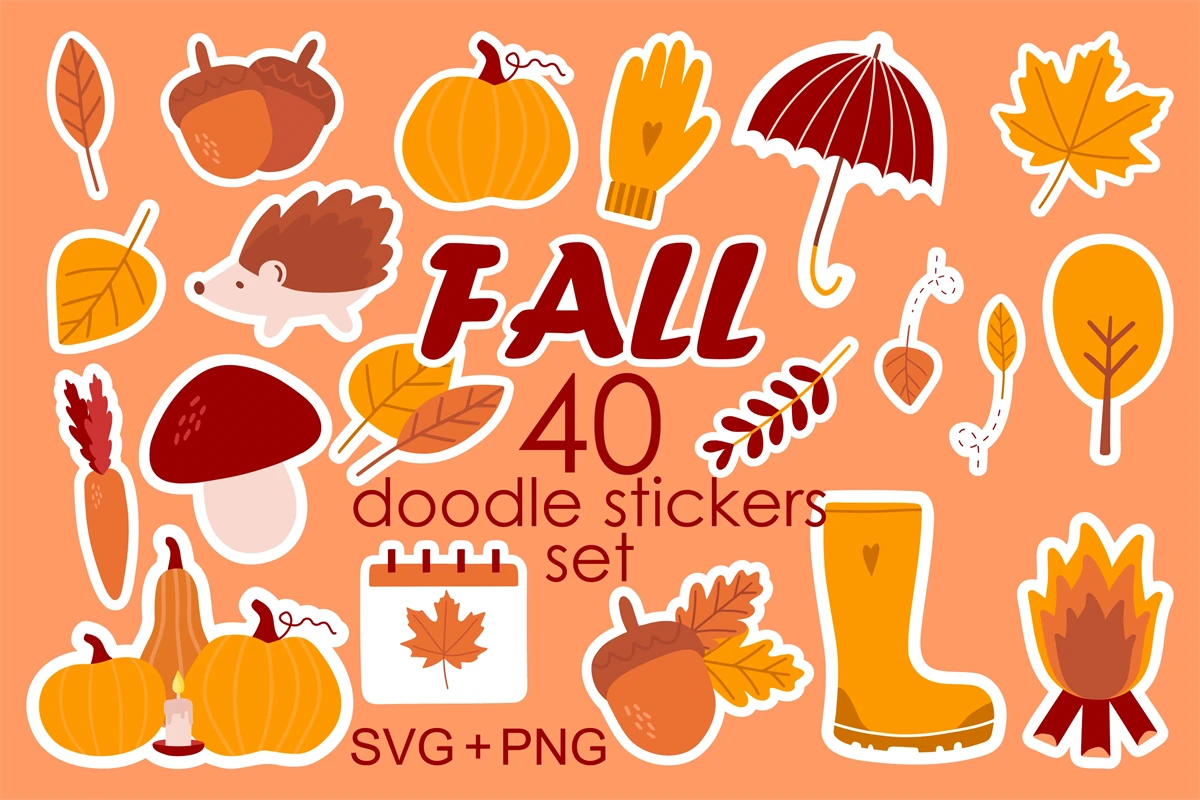 40 SVG files perfect for cutting. You can also change the colors of elements (with white stroke on the transparent background)