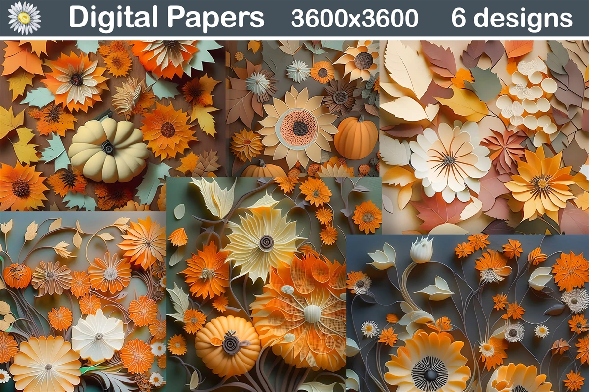 Fall Pumpkin 3D Background. 3D Fall Digital Paper