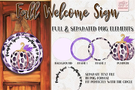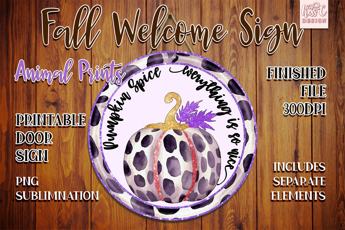 Fall Pumpkin Animal Print Sublimation Round Door Sign. Farmhouse welcome sign