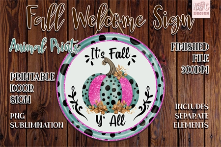 Fall Pumpkin Animal Print Sublimation Round Door Sign. Farmhouse welcome sign