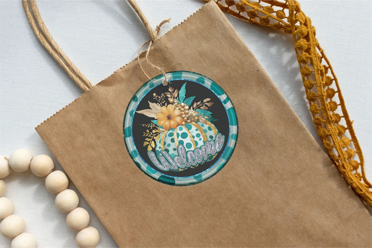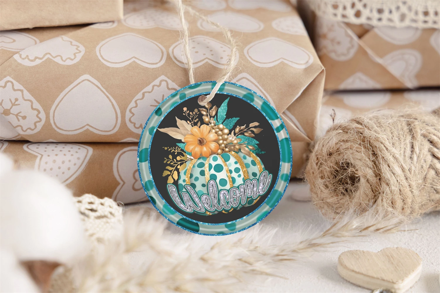 Fall Pumpkin Animal Print Sublimation Round Door Sign. Farmhouse welcome sign