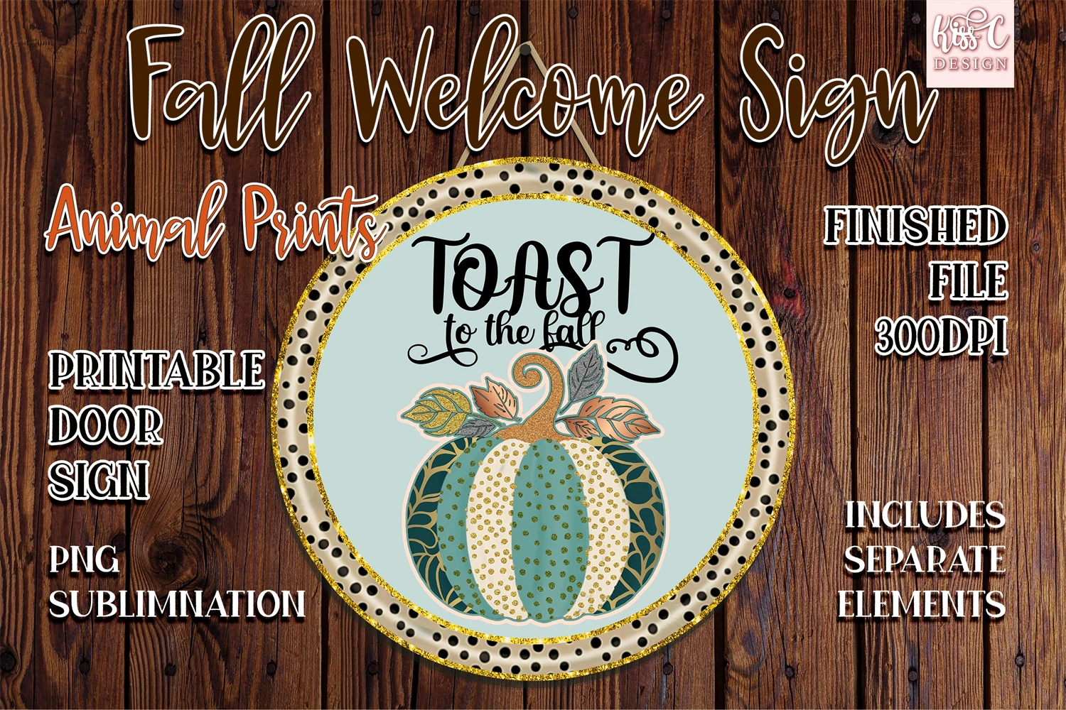 Fall Pumpkin Animal Print Sublimation Round Door Sign. Farmhouse welcome sign