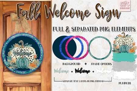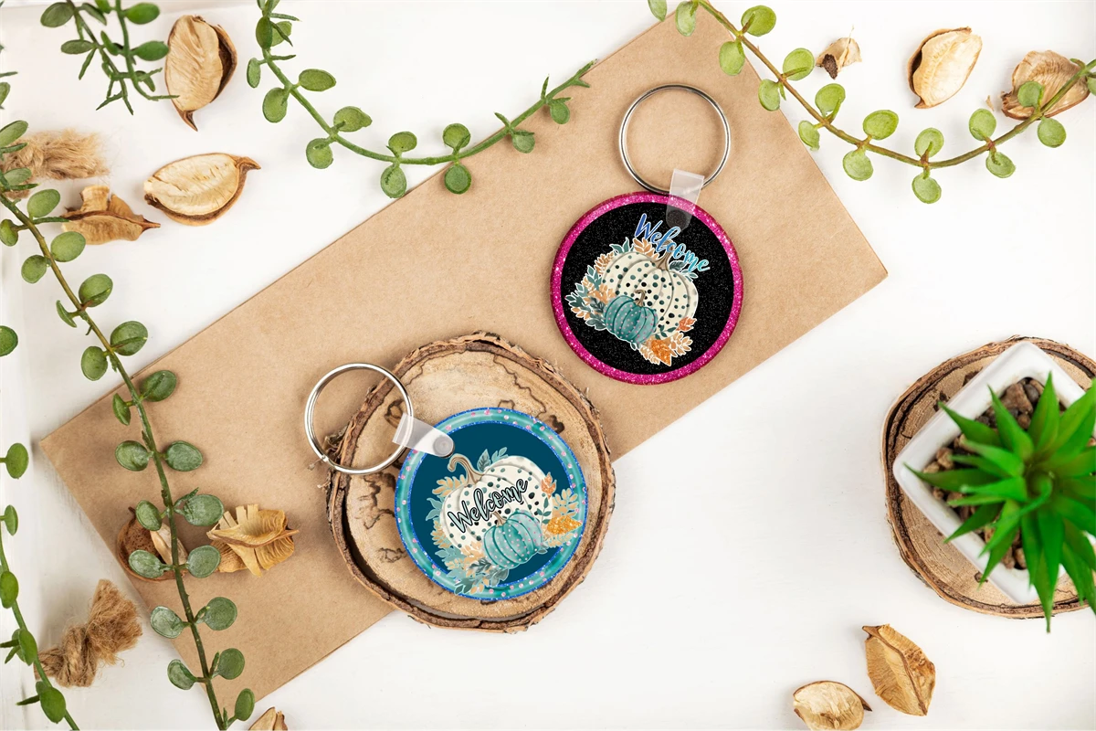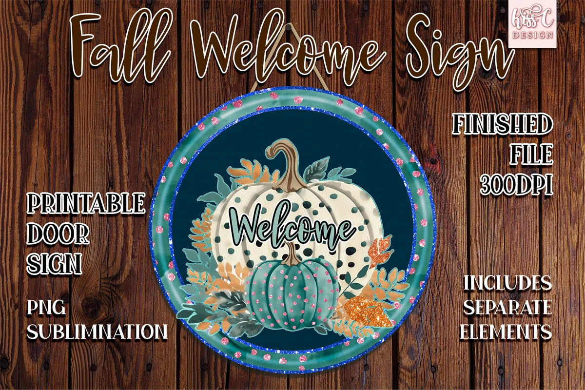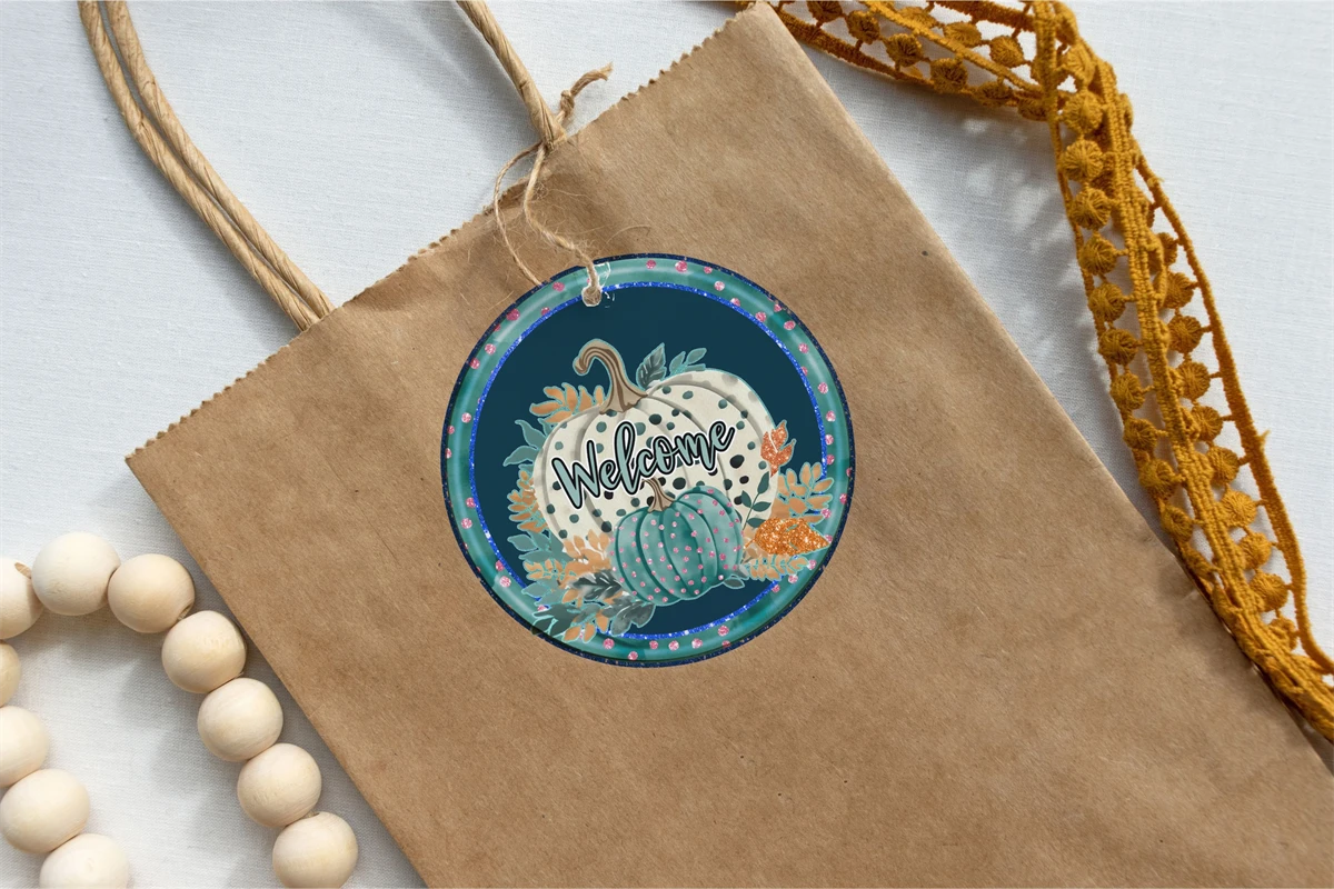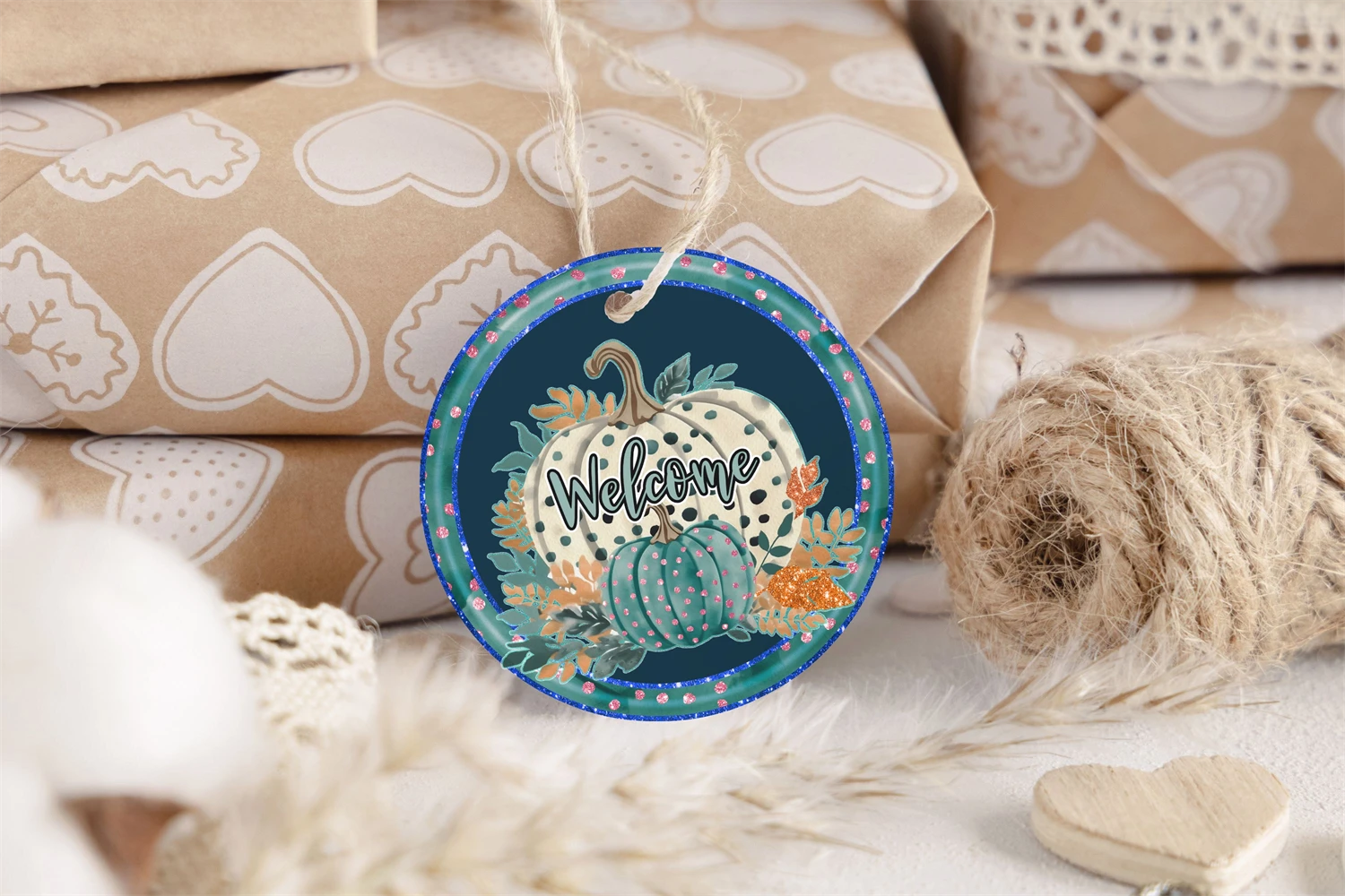 Fall Pumpkin Animal Print Sublimation Round Door Sign. Farmhouse welcome sign