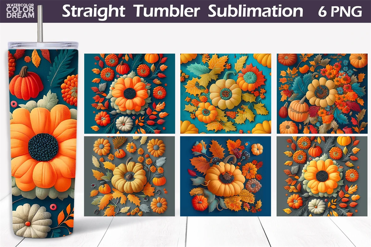 Fall Pumpkin Tumbler Wrap. Pumpkin Embroidery Tumbler