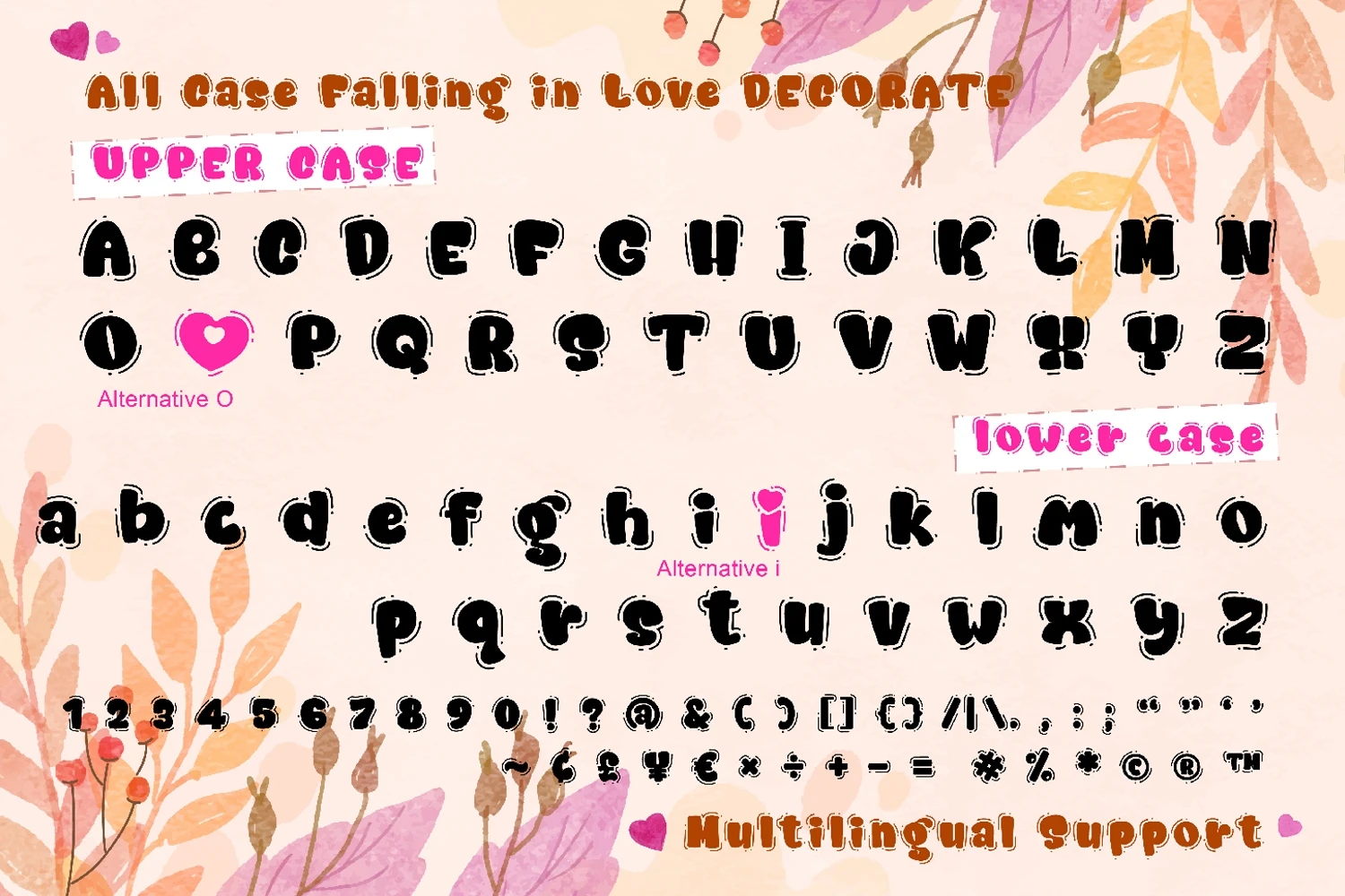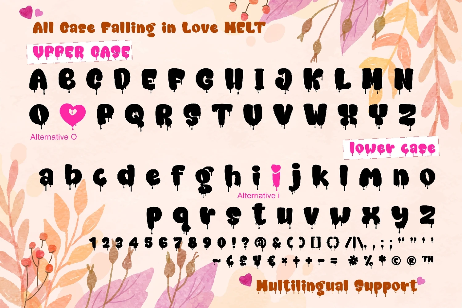 Include File: 3 family font 1. FallingInLove Reular, 2. FallingInLoveMelt, and 3. FallingInLove Decorative OTF, TTF Font file