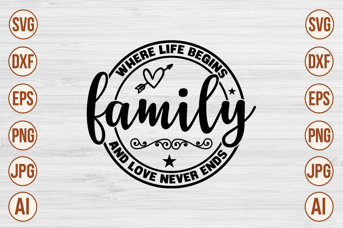 Family Where Life Begins And Love Never Ends SVG Cut File