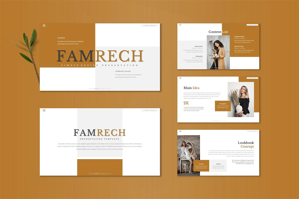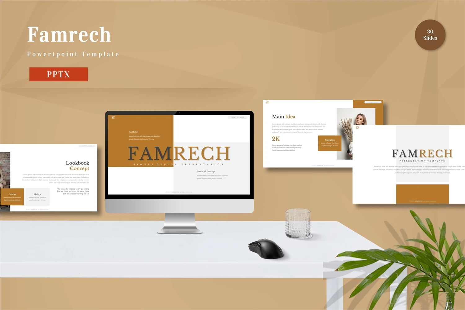 Get it now! **Famrech - Powerpoint Template** for All Business and Personal Needs All elements on this template are editable; input your content, replace your image with a placeholder, change the color, and all presentations include an animated slide to present your slides.