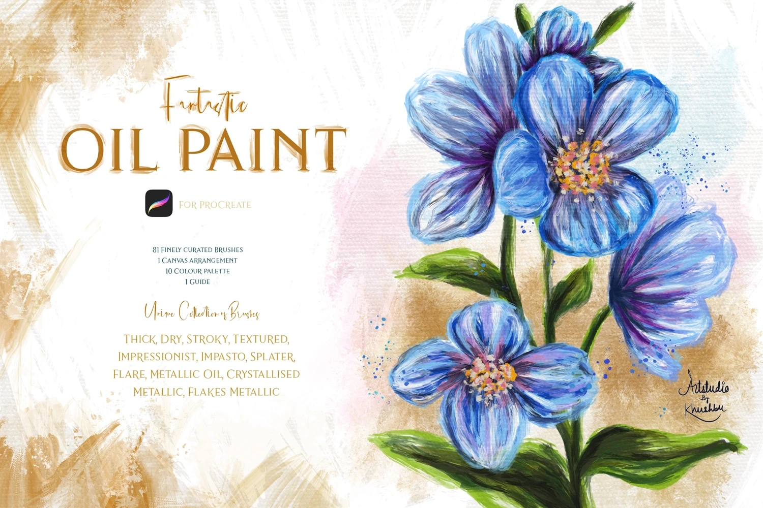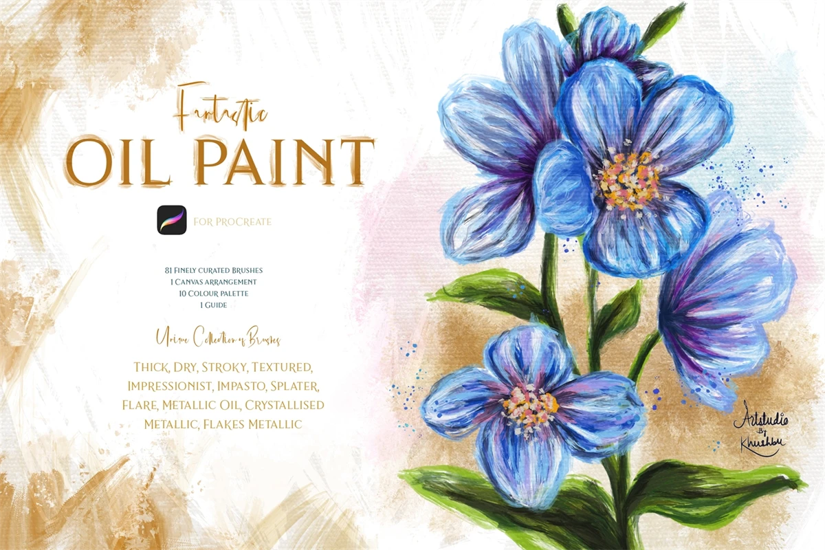 81 Brushes (Thick, Dry, stroky, textured, impressionist, impasto, splatter, flare, metallic oil, Crystallise metallic, flakes metallic and more!)