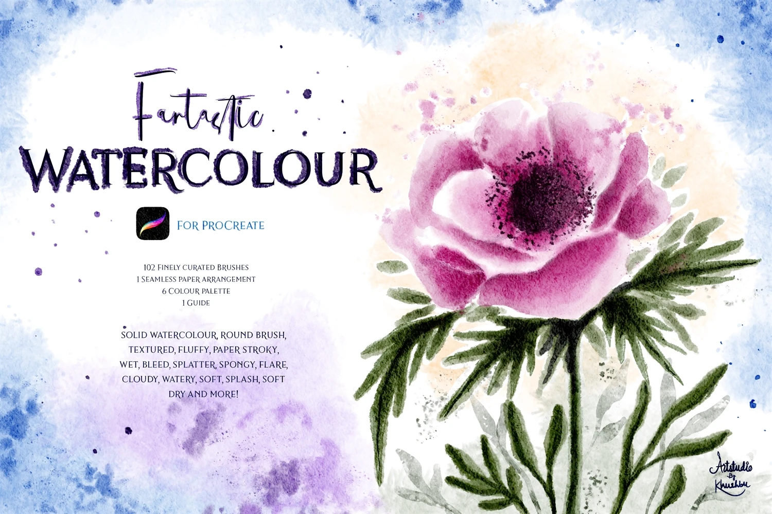 102 Finely curated Brushes (watery, wet, textured,bleed, outlined, background, splatter, metallic watercolour, Crystallise watercolour and more!)