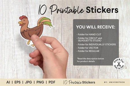 -10 JPG files including all stickers individually (6"x6"), with contours and cut lines