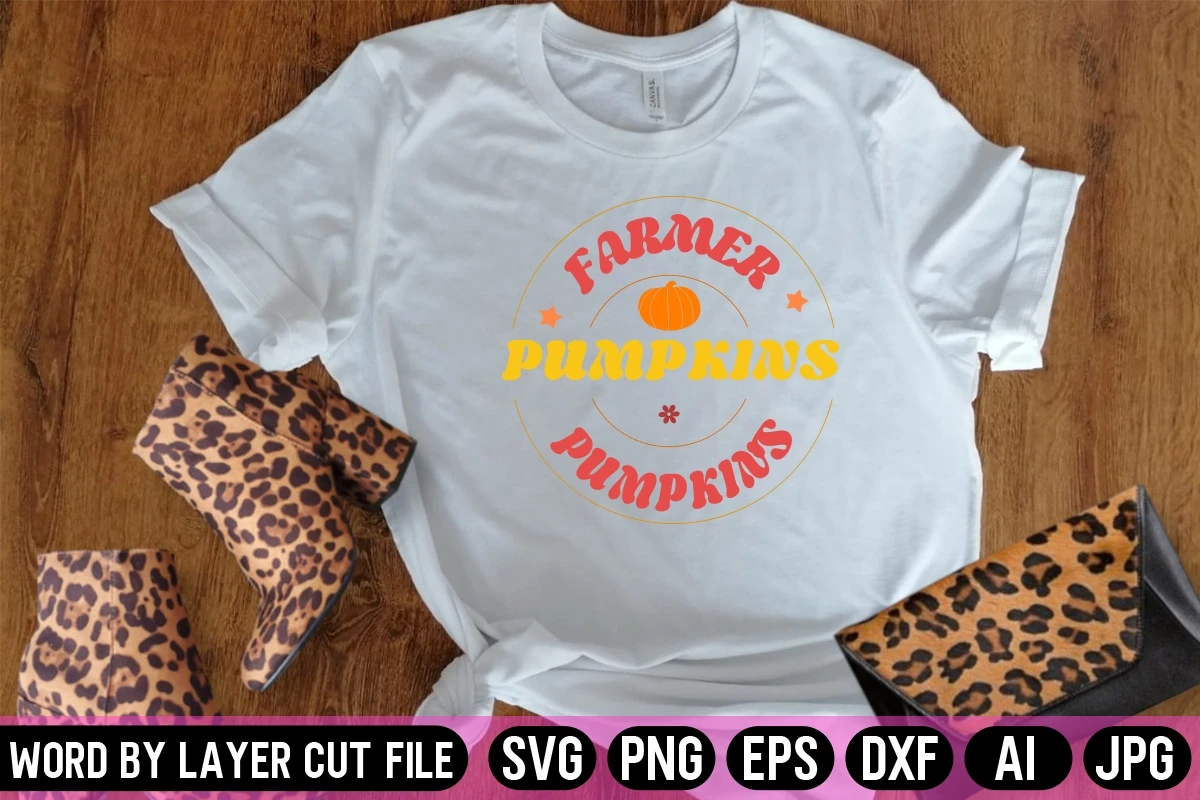 Farmers Market Pumpkins Retro Round Sign Svg Design