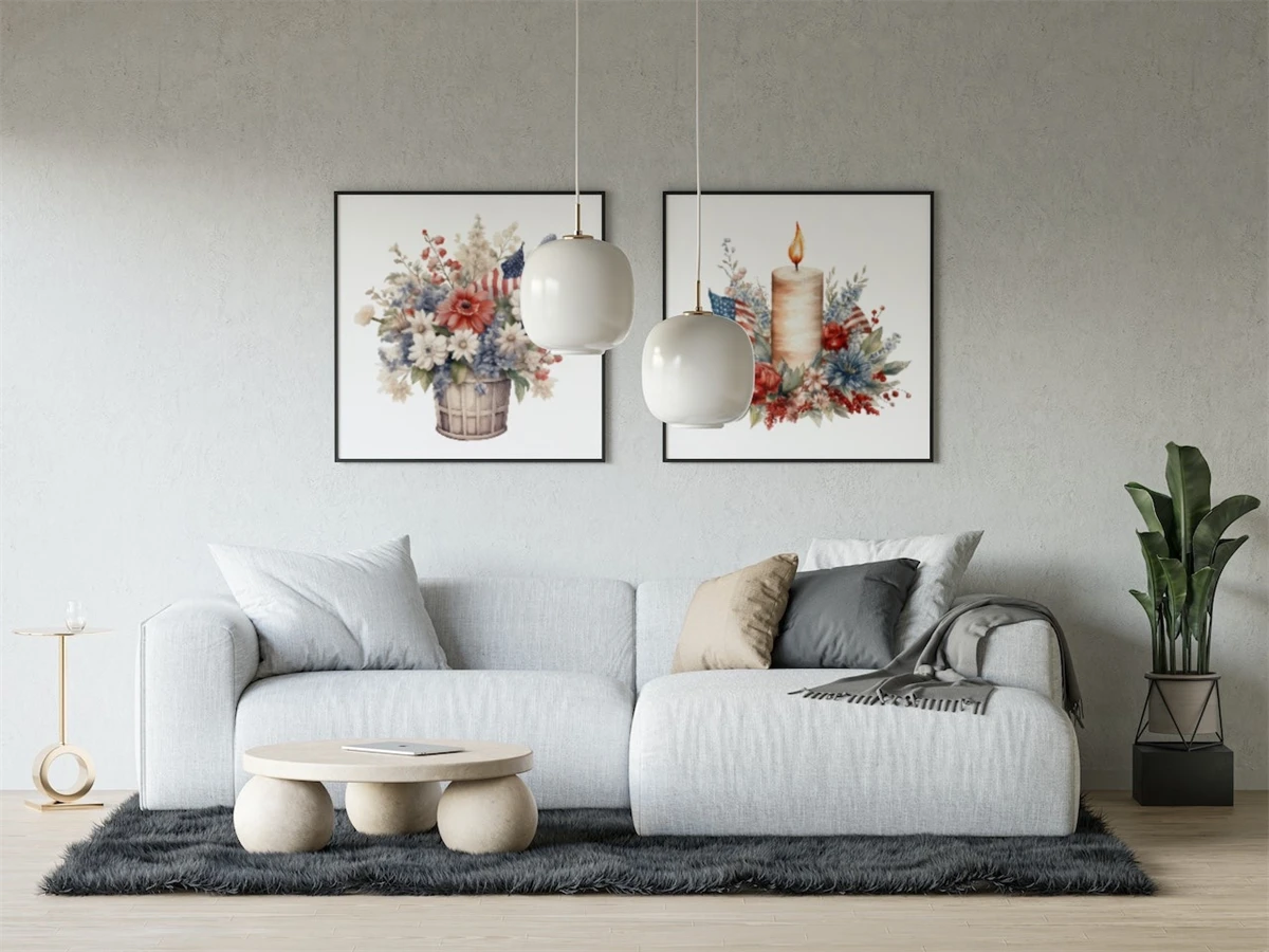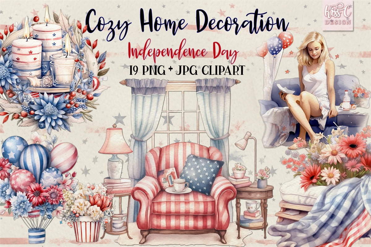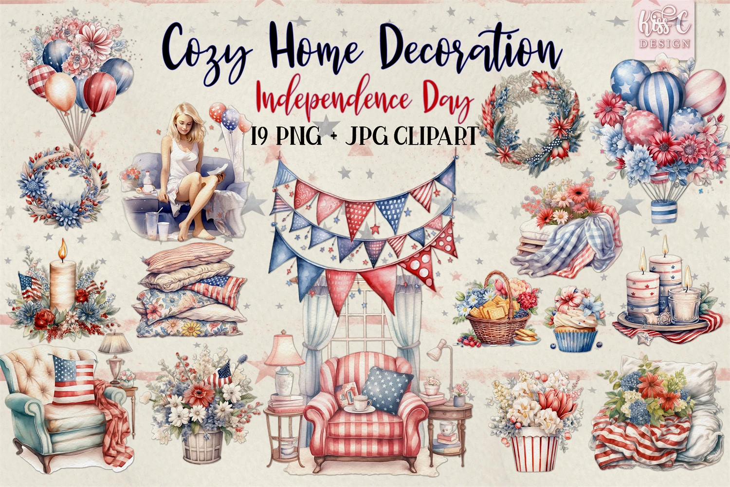 Watercolor Fourth of July Clipart Independence Day Farmhouse Cozy Home Decoration PNG graphics