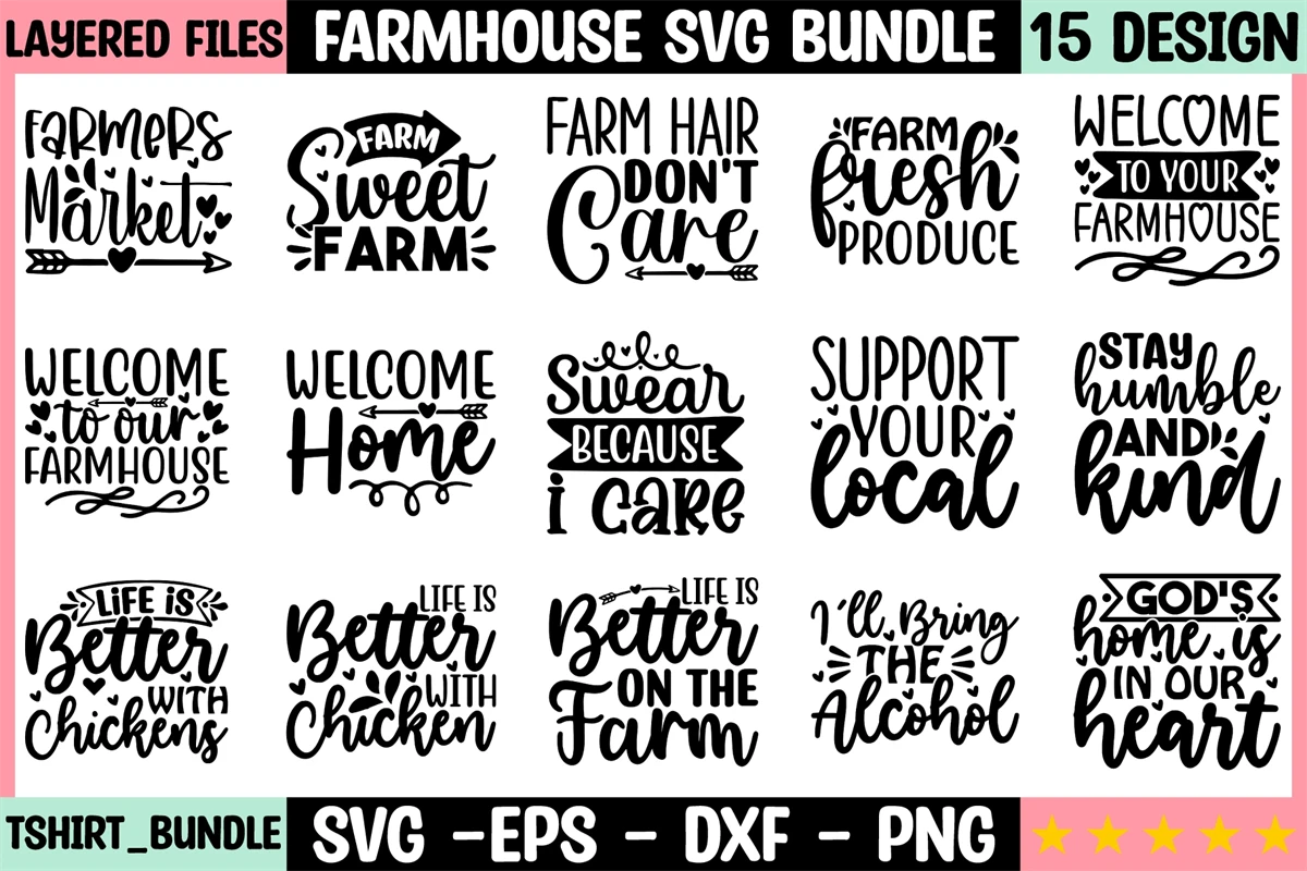 This Bundle Includes High-quality PNG Files Perfect For Sublimation. With This Bundle, Youll Be Able To Create Beautiful Farmhouse SVG Bundle Themed Products That Will Sell Like Hotcakes!