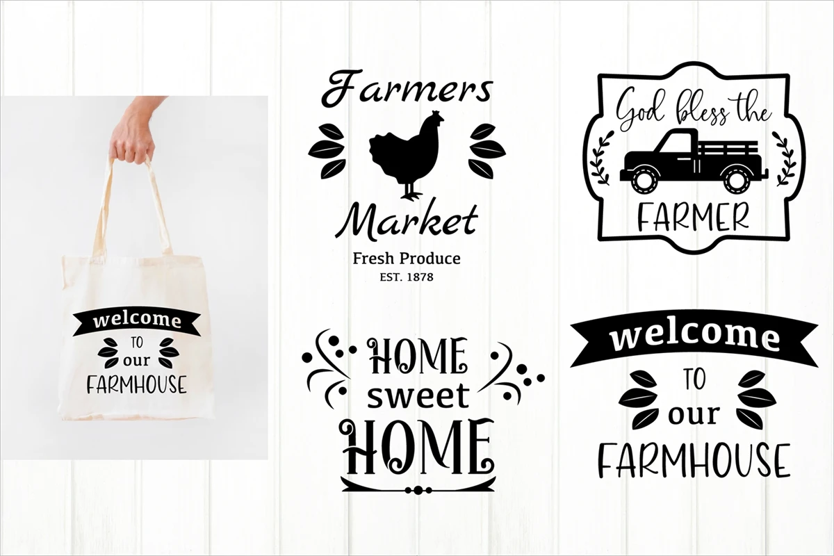 Farmhouse Tote Bag SVG design.