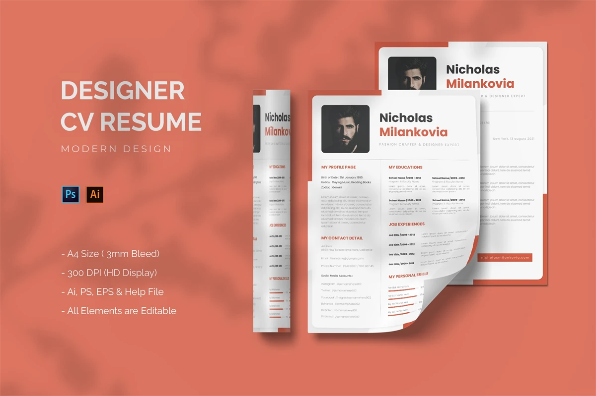 This is Fashion Designer - CV Resume Get it now!, CV Resume for All business and personal needs. Great for your business and this design will make your interested, elegant, and easily editable according to your needs (Adobe Illustrator,Adobe Photoshop). You can use this CV Resume for personal purpose, or company purpose, I hope you enjoy for this, Hope you Like it dont forget to rate, Thanks.