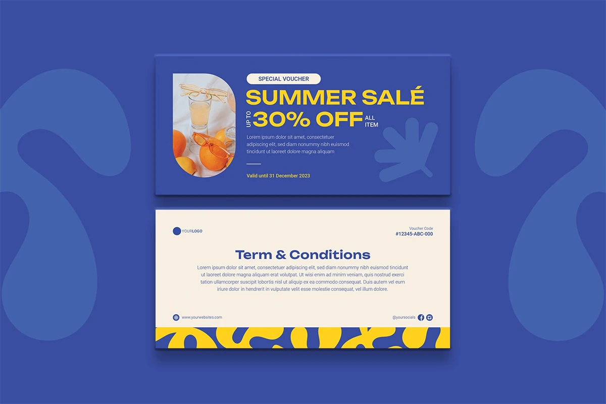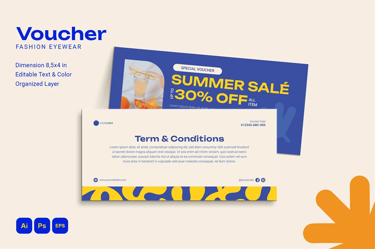 With this Gift Voucher Card, you can get the word out about your salon, spa, cosmetics store, health food store, pharmacy, hospital, boutique, fashion store, shopping mall, and more. This Gift Voucher Template is fully editable and customizable. You can add your product or service image and details of your offering very easily and quickly. Also, you have the option of changing colors and backgrounds. This gift template design will save you both time and money.