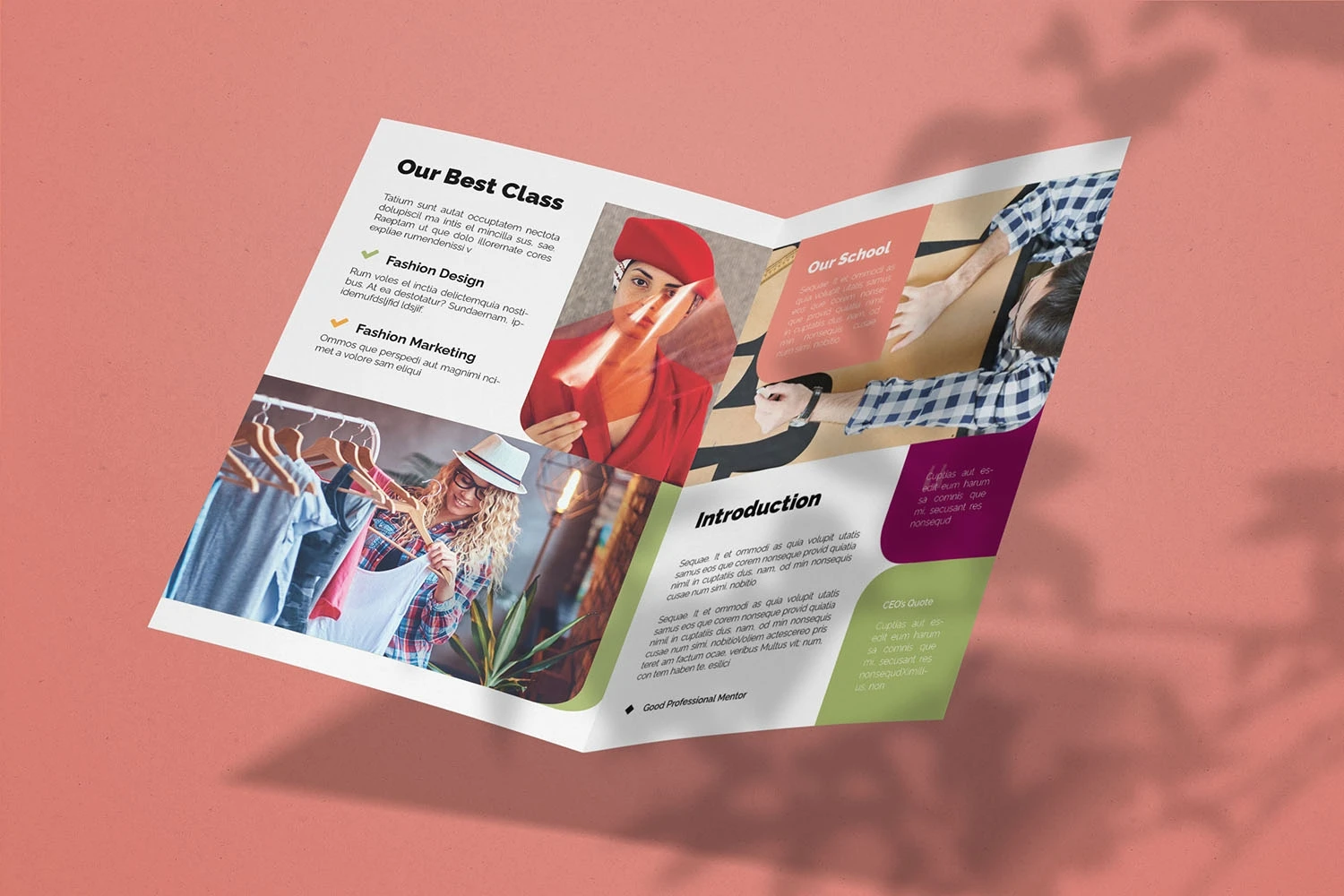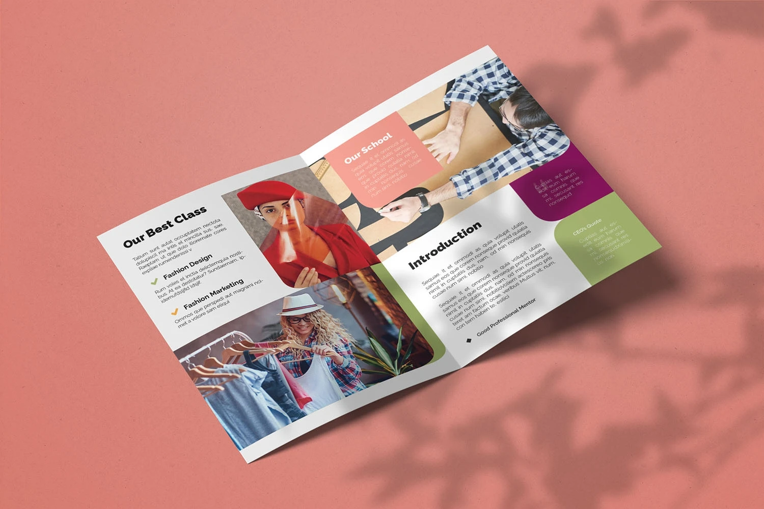 Fashion School - Bifold Brochure We present this Bifold Brochure for you, simple and very elegant, and this Bifold Brochure is suitable for all types of your business, made with adobe inDesign, very easy to customize, Hope you Like it, dont forget to rate, Thanks.