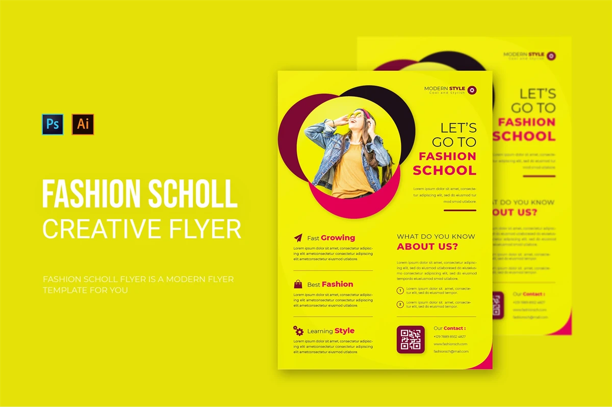 Fashion School - Flyer. This Flyer template is designed for your company's business needs. very clean and elegant, and also easily edited and adjusted to your liking