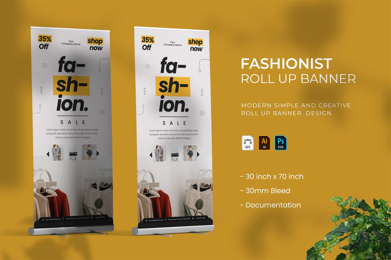 Roll-Up Banner Template: This is the best way to sell more furniture if you are selling it. With this beautiful roll-up banner, you can beat out your competitors and make your sales area look better. When you want to make an impression, its very important that your banner stand has the right design and information. Bring your project to the next level and see what can be done.