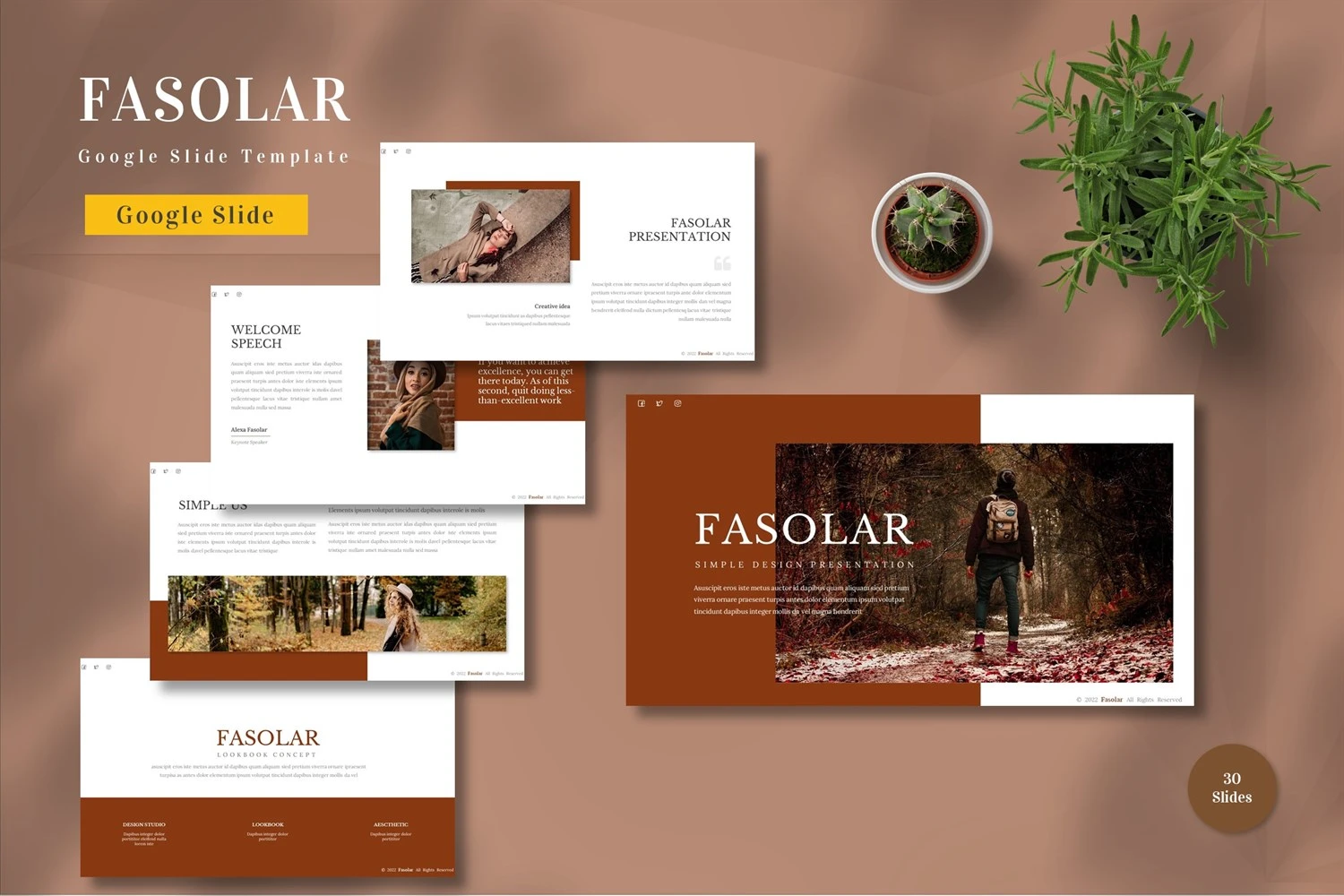 Get it now! **Fasolar - Google Slide Template** for All Business and Personal Needs All elements on this template are editable; input your content, replace your image with a placeholder, change the color, and all presentations include an animated slide to present your slides.