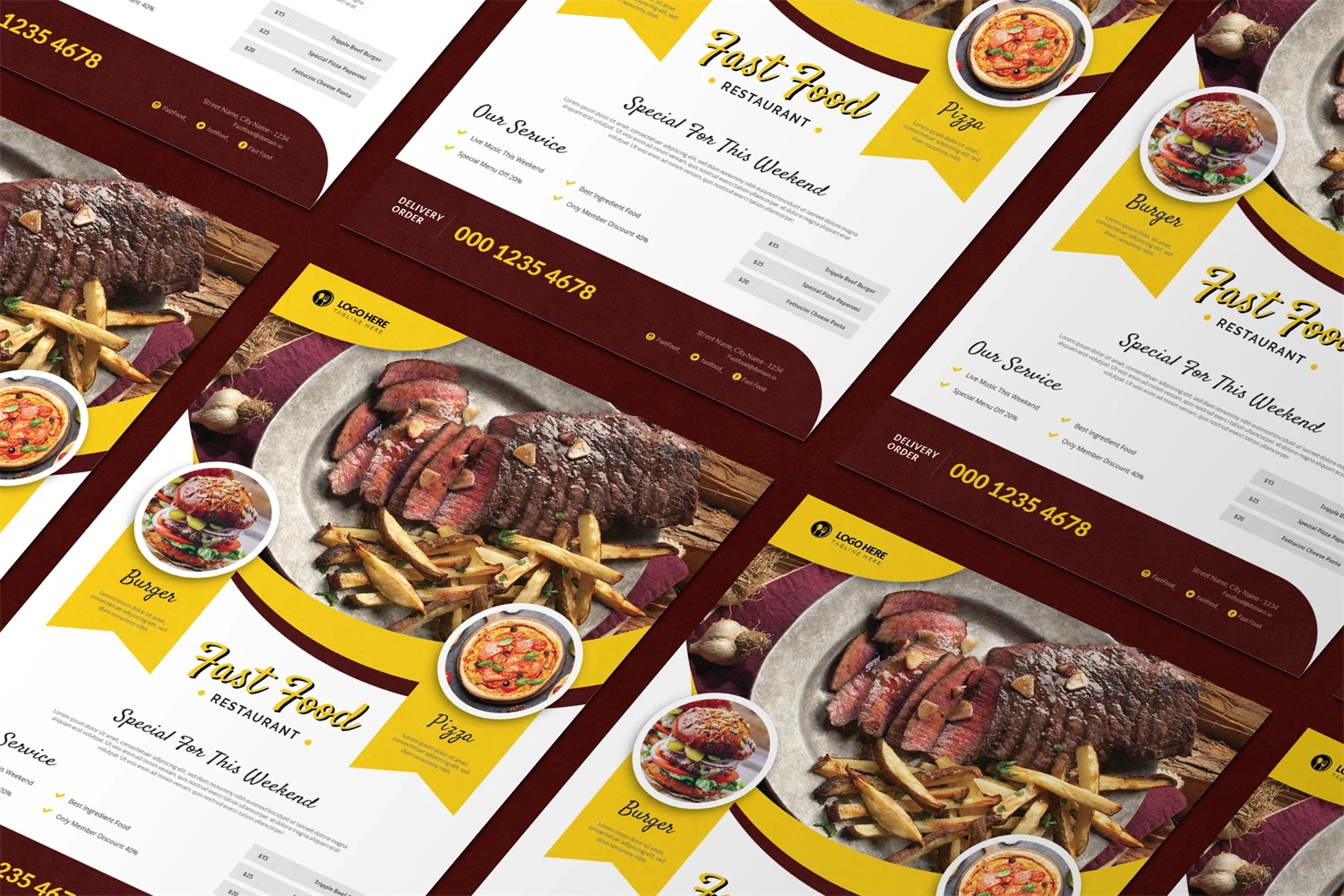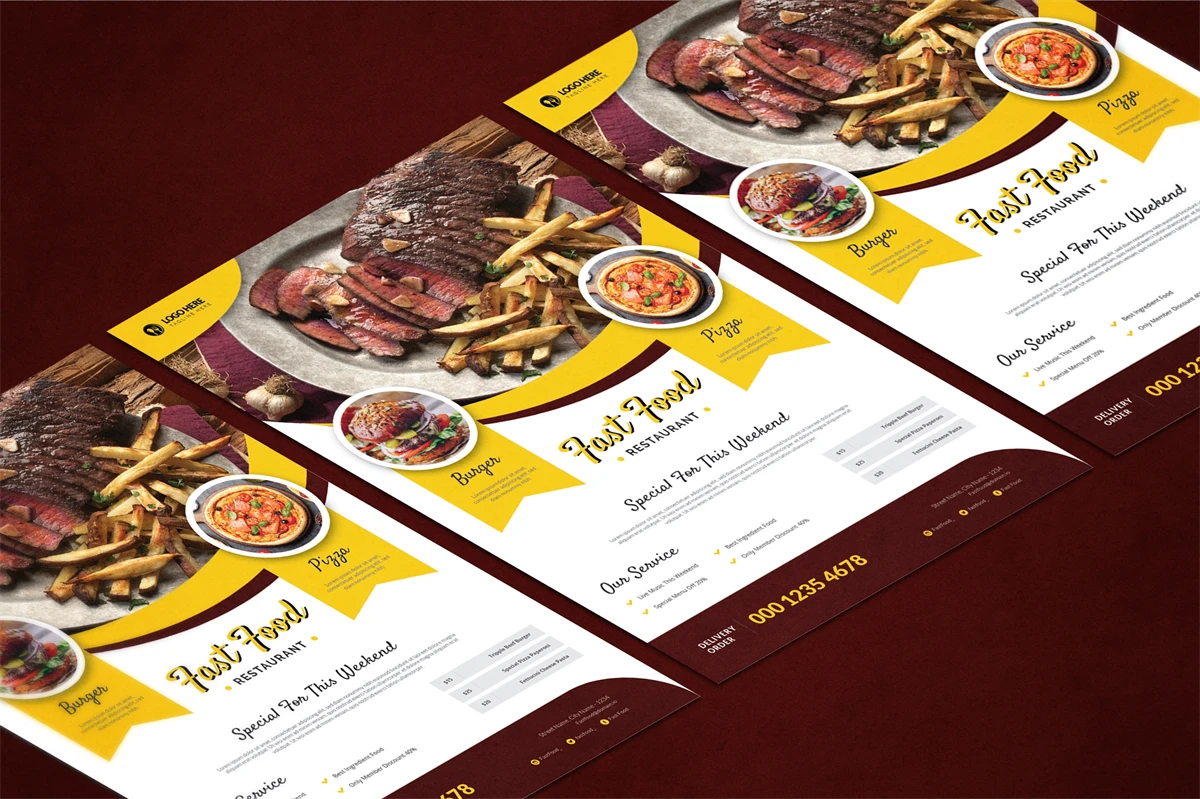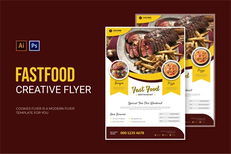 Fast Food - Flyer. This Flyer template is designed for your company's business needs. very clean and elegant, and also easily edited and adjusted to your liking