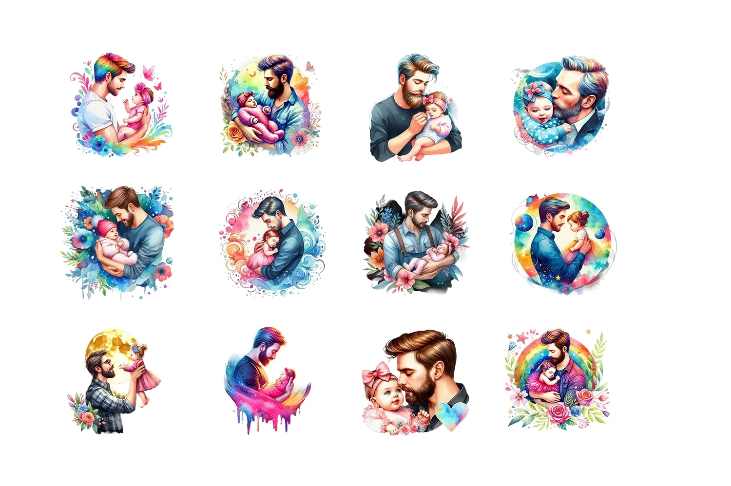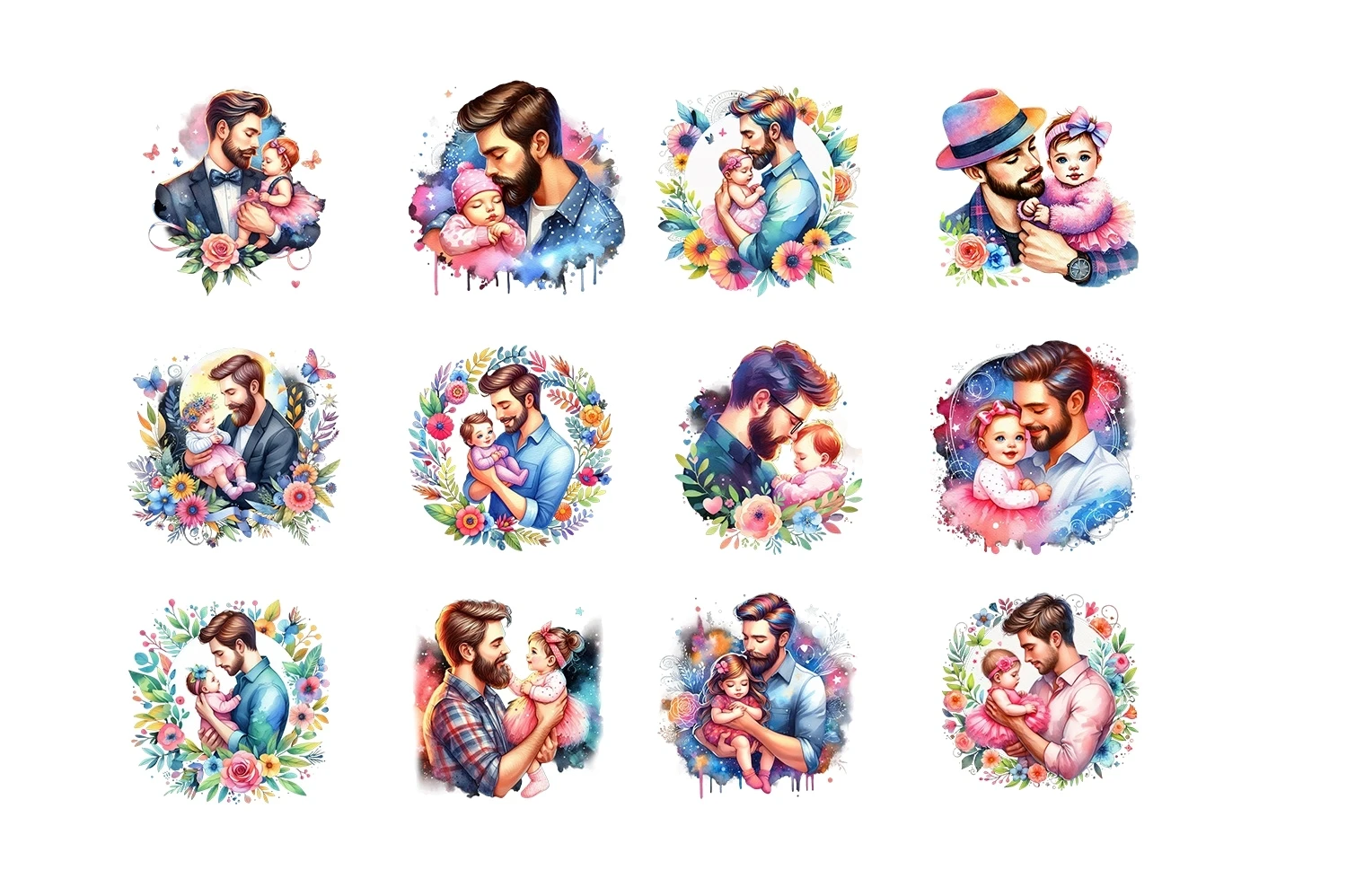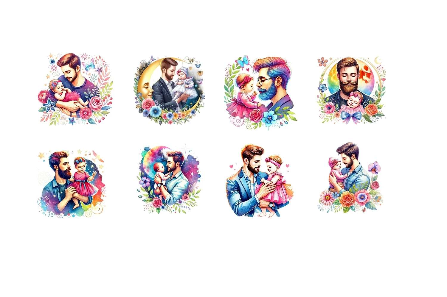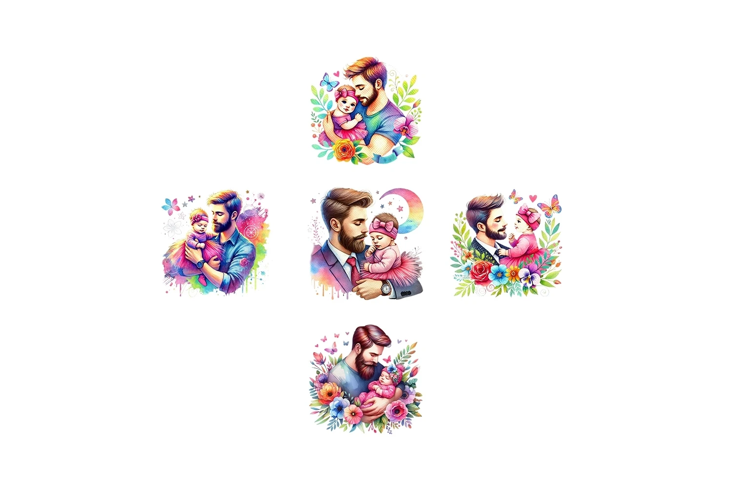 Father & Baby Girl Fathers Day Clipart Sublimation PNG (AI-generated).