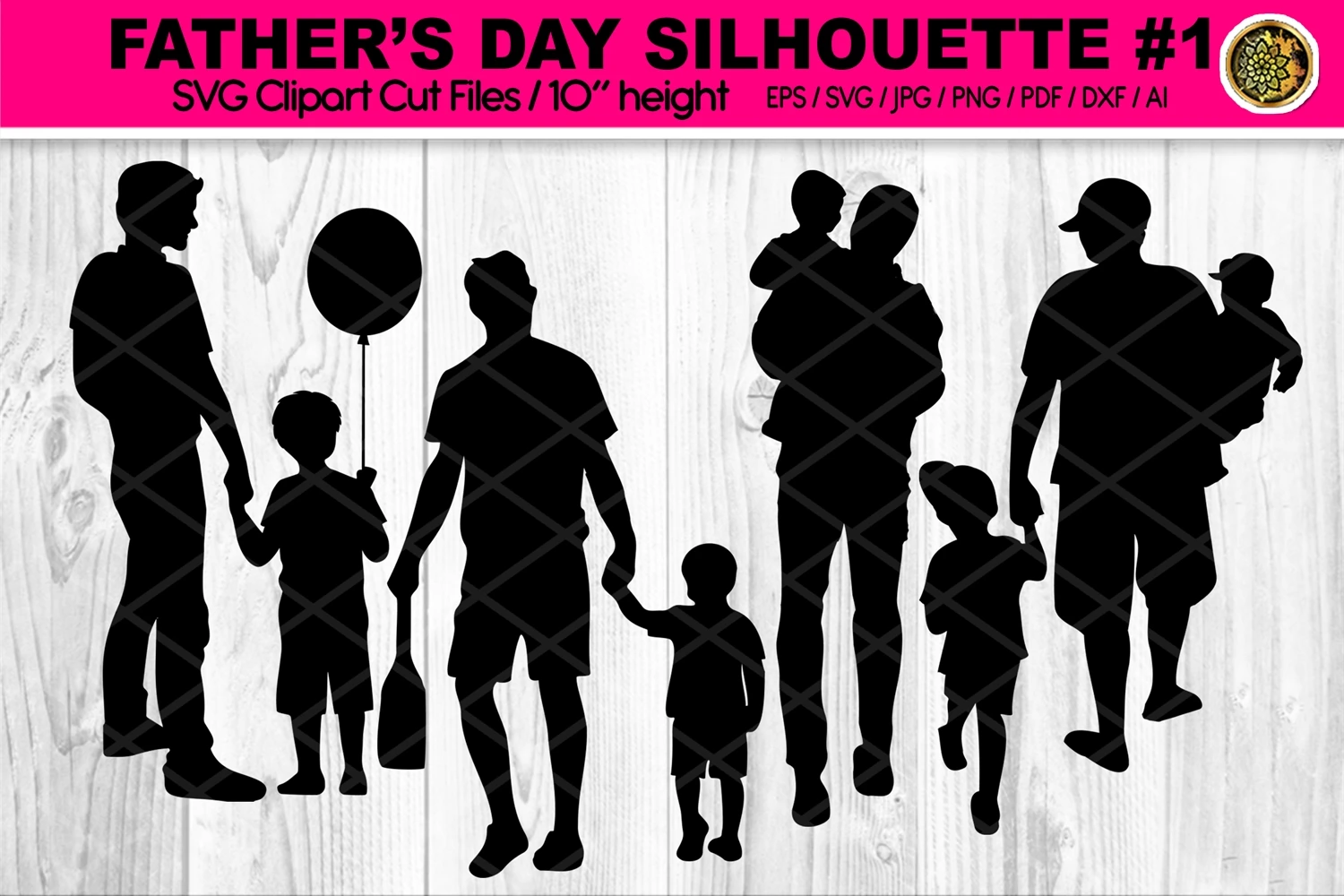 Set of Digital Download Father's Day Silhouette V-1 for your creative DIY projects. 4 designs of warm-hearted posting characters of Fathers and their children. Perfect for use as an element for Father's Day Gift Card, Wallart, vinyl, personalized T-shirts, apparel, cups, stickers, card stock, and other DIY projects. Options are endless!