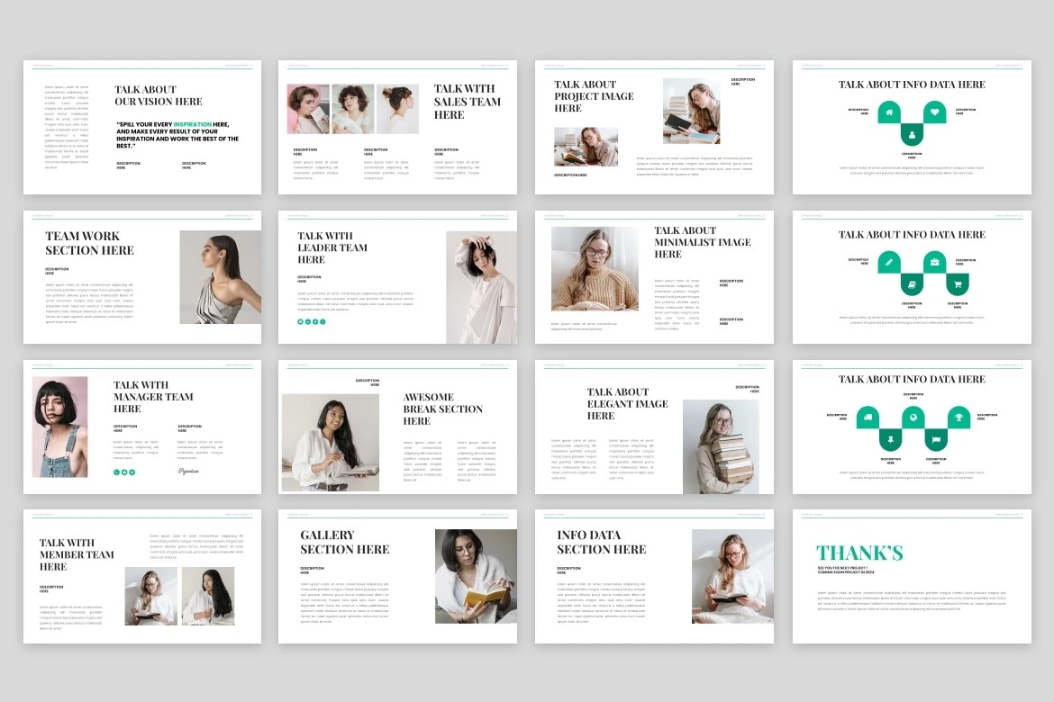 Get it now! **Feranda - Google Slide Template** for All Business and Personal Needs All elements on this template are editable; input your content, replace your image with a placeholder, change the color, and all presentations include an animated slide to present your slides.