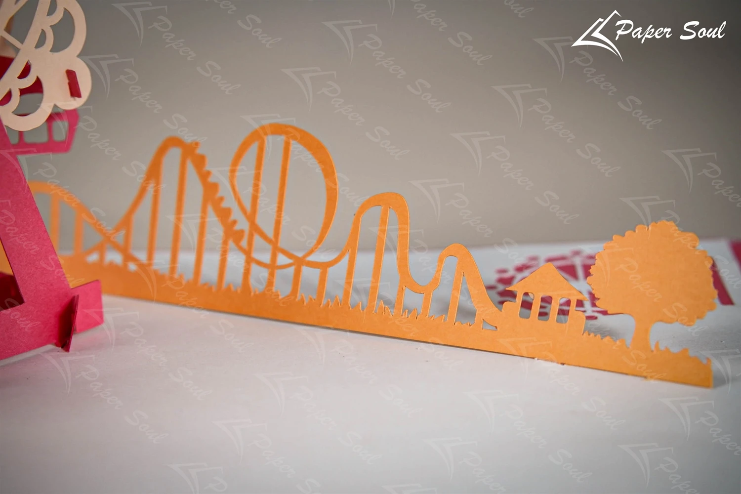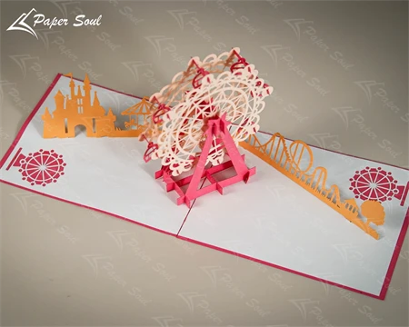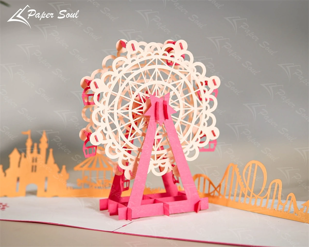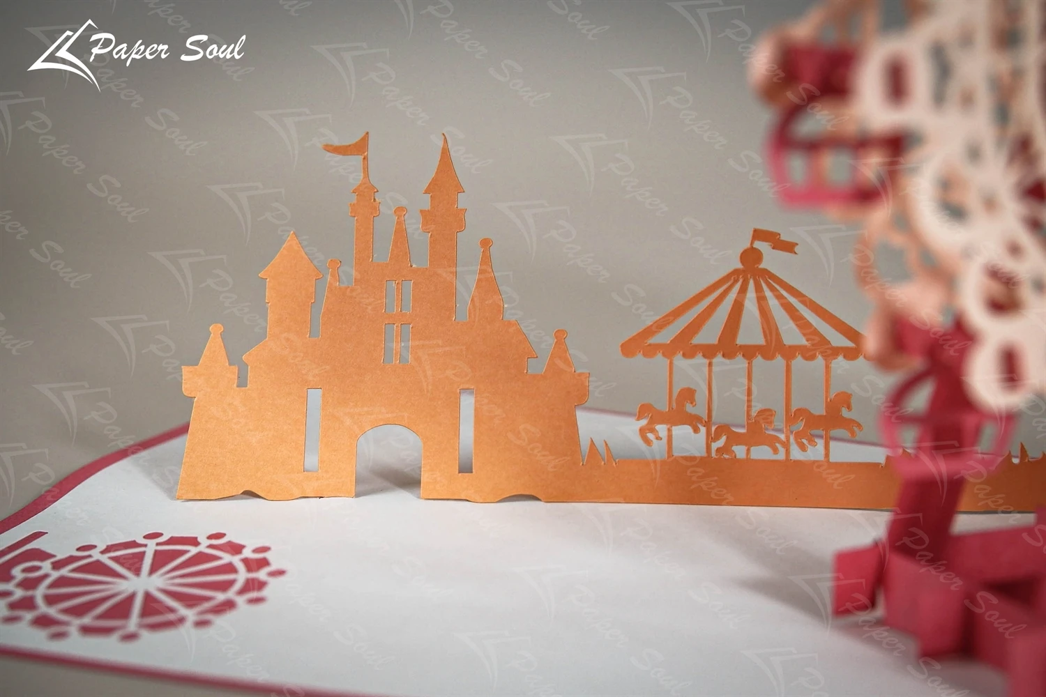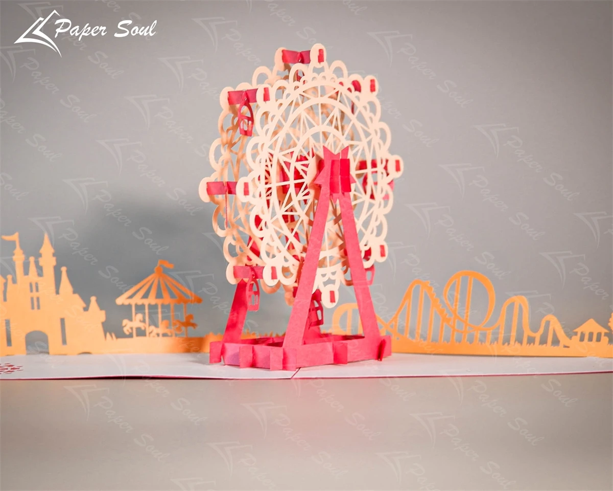Make the wonderful pop-up card, featuring a Ferris Wheel, with this Ferris Wheel pop-up card template - in SVG, PNG, PDF format, ready to cut on your Cricut, Silhouette, or other cutting machines.