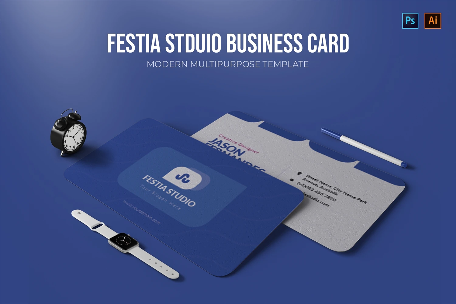 This Festia Studio - Business Card make your business cards look professional. You can use this business card for, identity, company business cards, Corporate Business, Creative, Blogs, Photographers, Artists, Designers, etc.