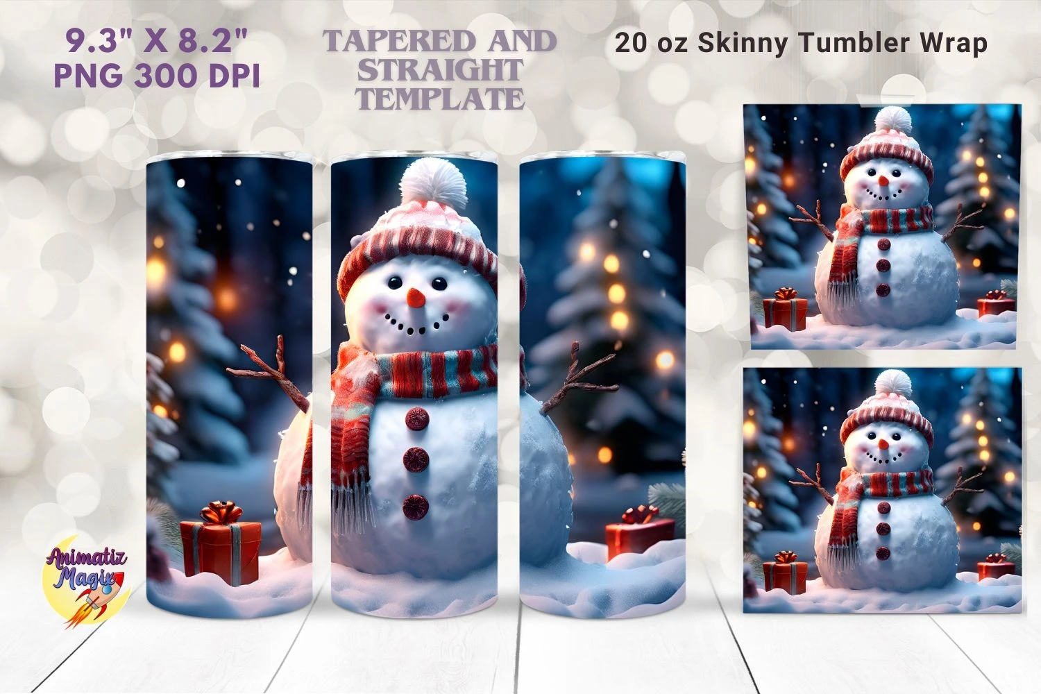 Festive Snowman 20 oz Skinny Wrap Christmas Design