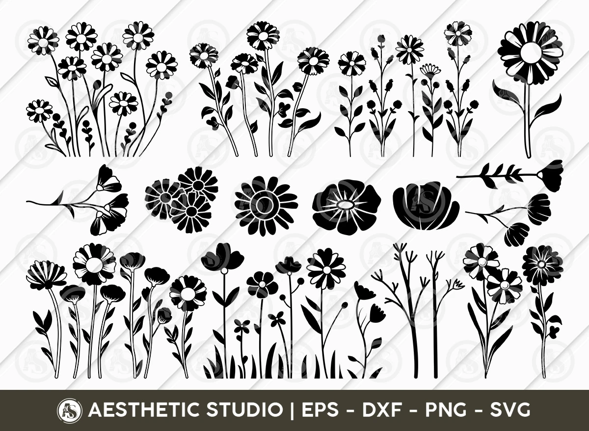 Captivating Field Flower Designs: Our Field Flowers SVGs and silhouettes capture the enchanting beauty and simplicity of wildflowers, making them perfect for artists, designers, nature lovers, and anyone who wants to add a touch of rustic elegance to their creations.