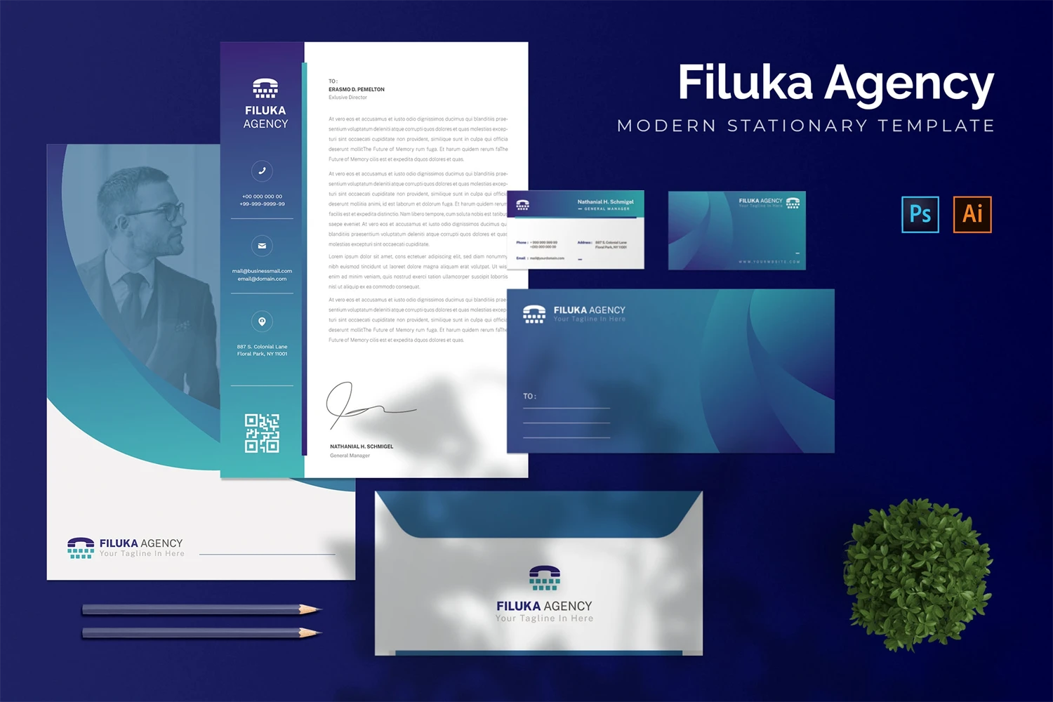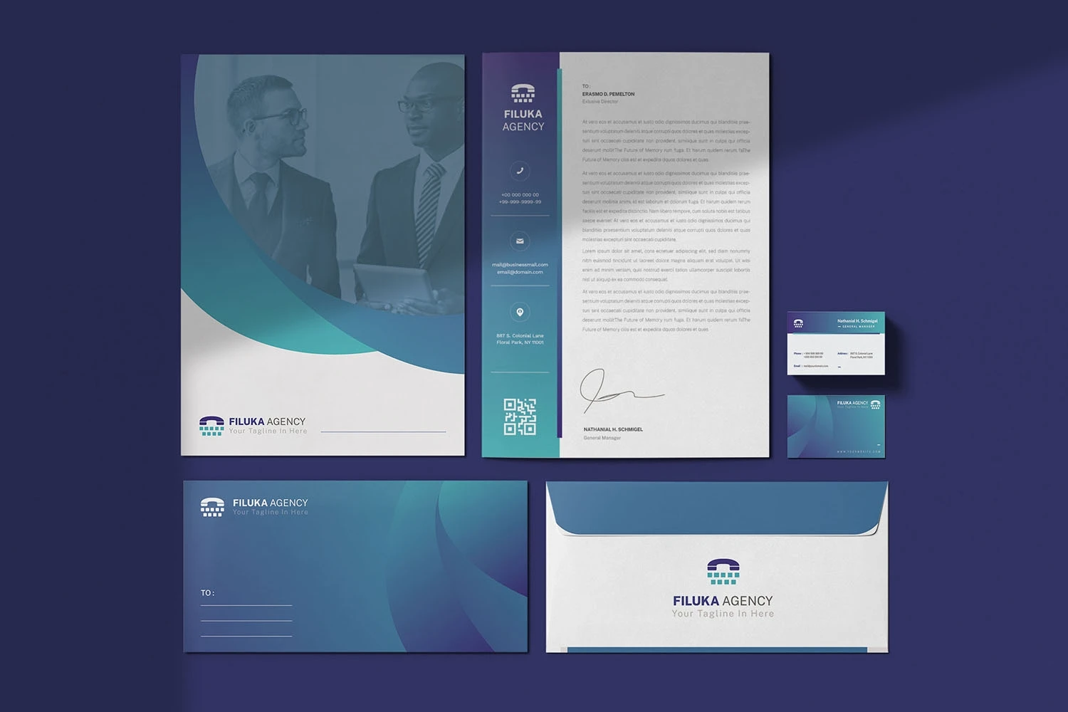 Filuka Agency - Stationary. This template is great for your business and this design will make your interested, elegant, and easily editable according to your needs. I hope you enjoy for this stationary.