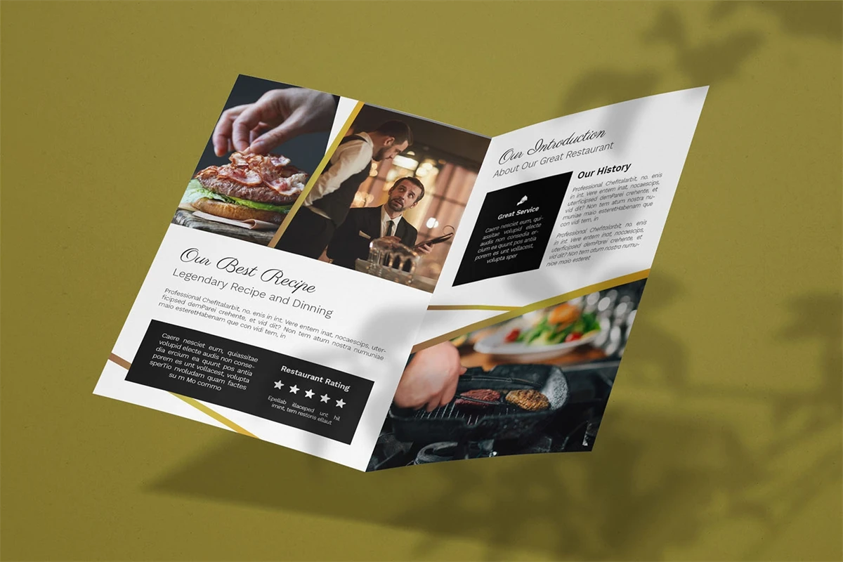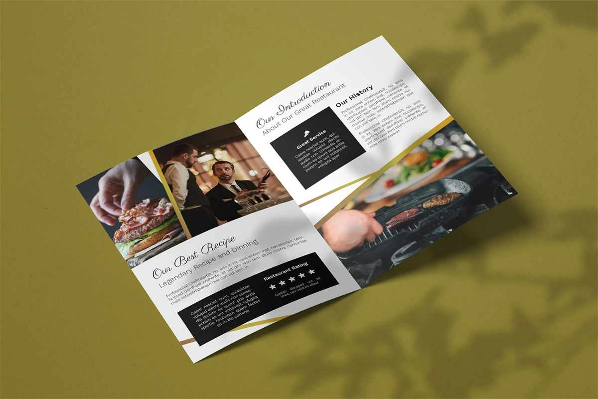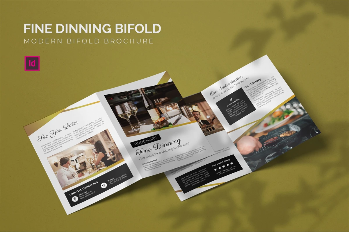 Fine Dinning - Bifold Brochure We present this Bifold Brochure for you, simple and very elegant, and this Bifold Brochure is suitable for all types of your business, made with adobe inDesign, very easy to customize, Hope you Like it, dont forget to rate, Thanks.