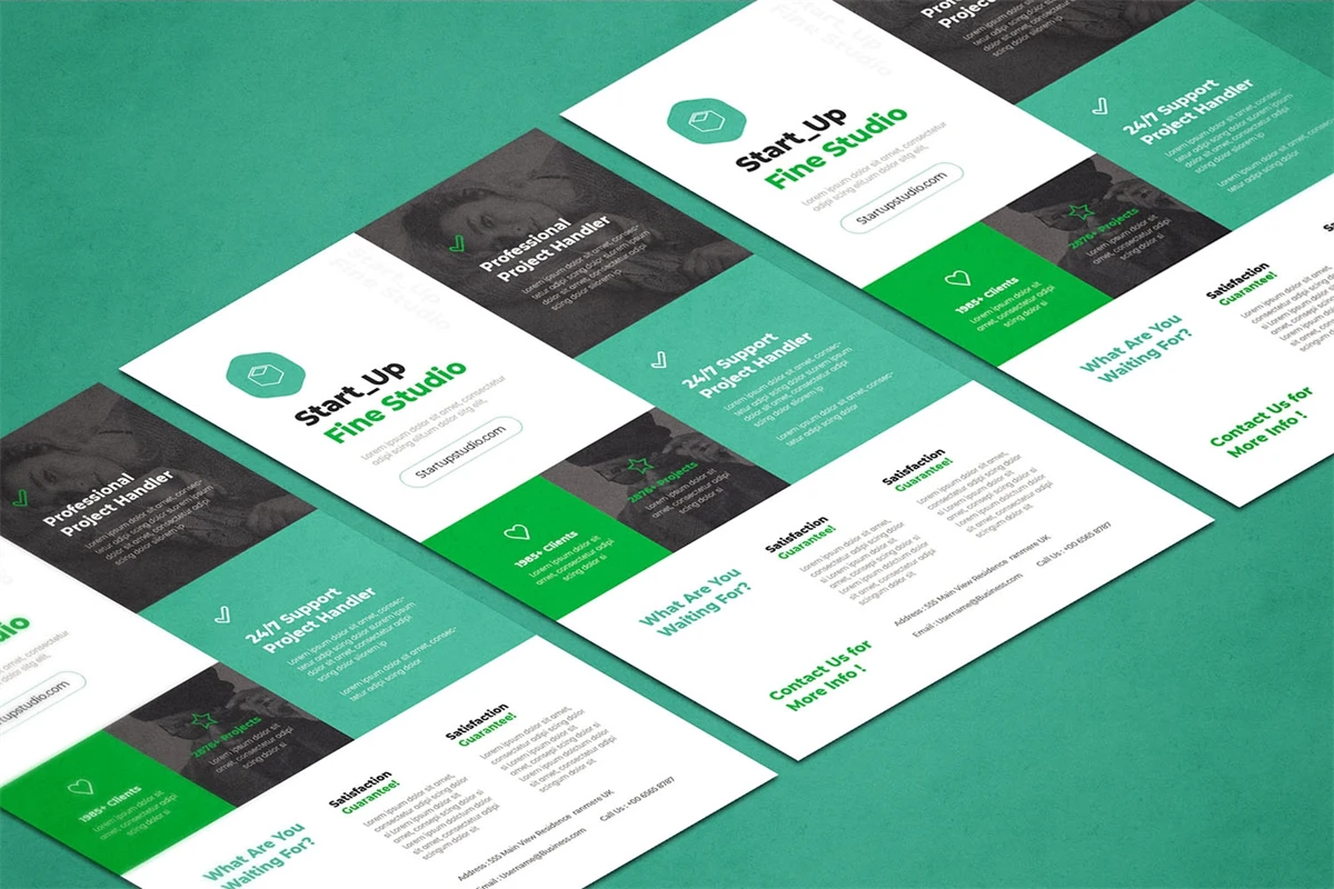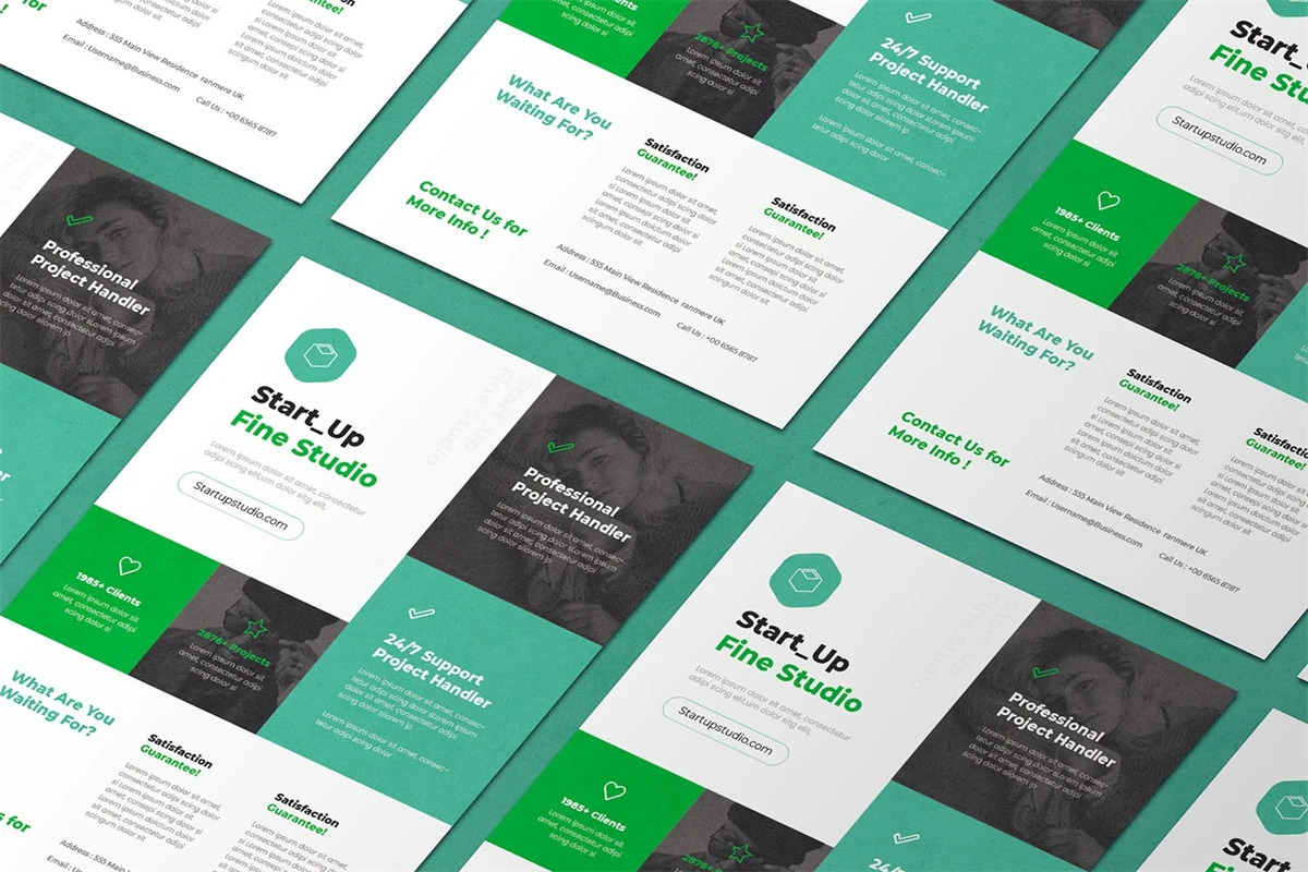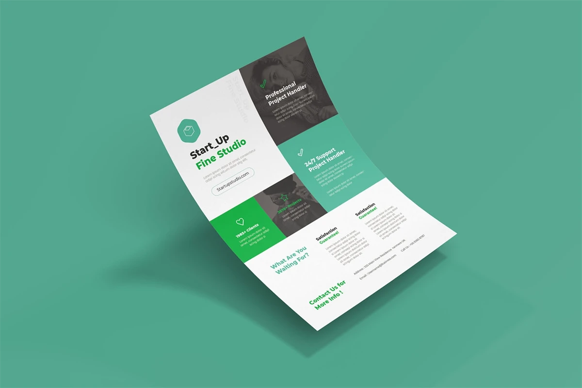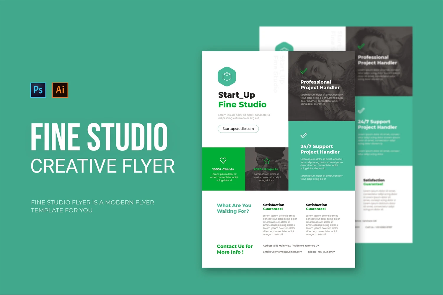 Fine Studio Start Up - Flyer. This Flyer template is designed for your company's business needs. very clean and elegant, and also easily edited and adjusted to your liking